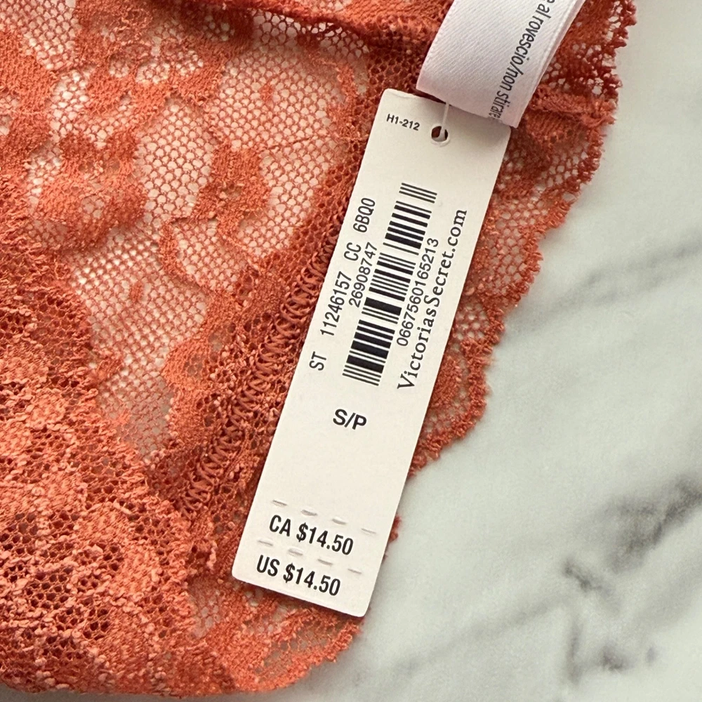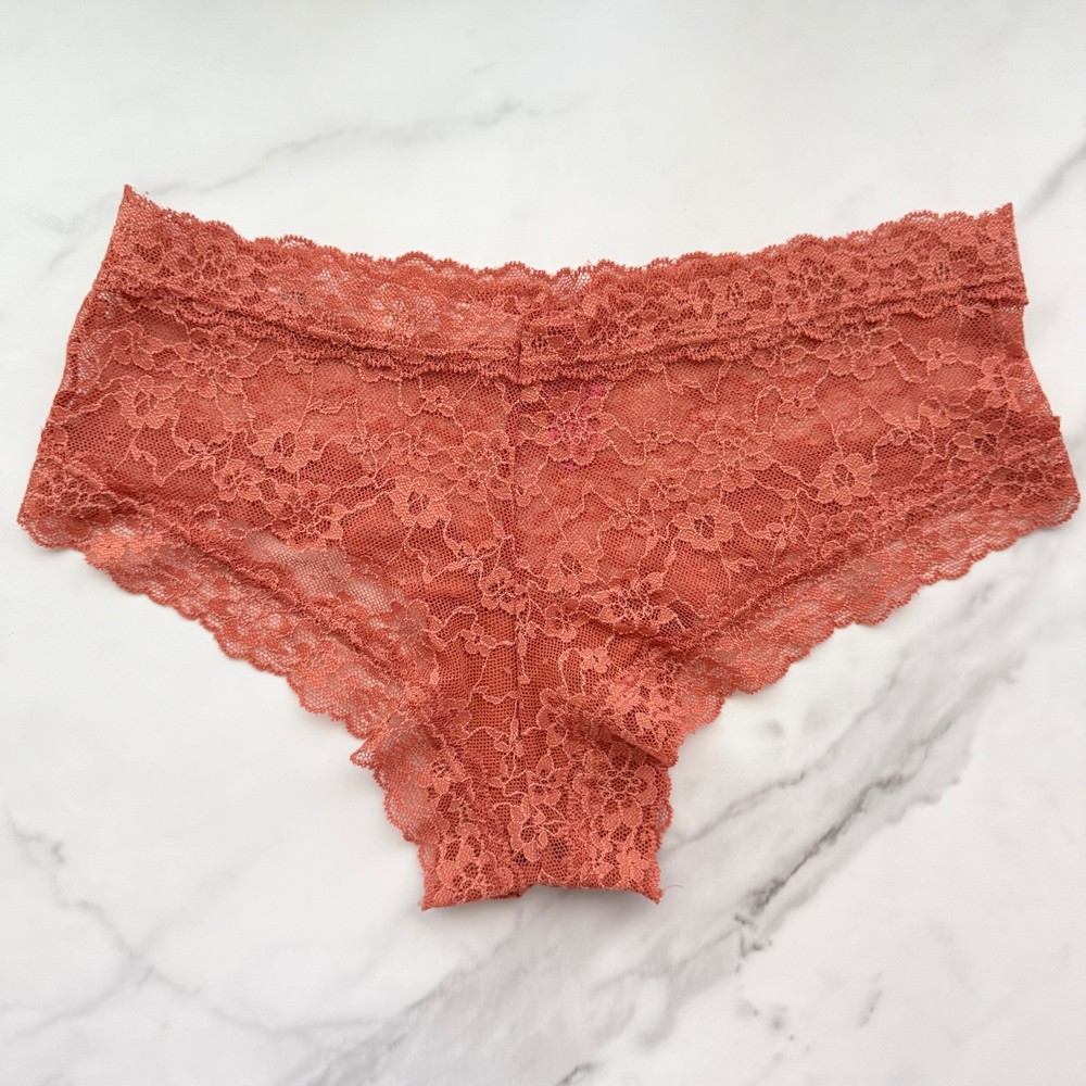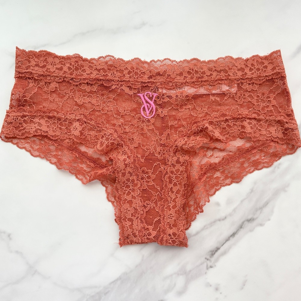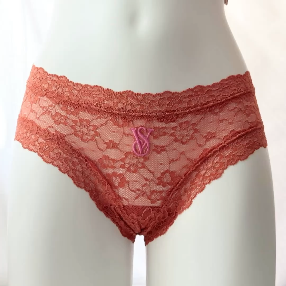 All photos are taken by Goob's Closet & Boutique and may not be reused without permission. This item is listed on multiple platforms and may sell elsewhere without notice. If you're interested, we recommend purchasing now to ensure availability. Flirty, floral, and flatteringly cheeky—this sheer lace panty is a little everyday luxury. Designed in allover posey-pattern stretch lace that lays smooth under clothes, it’s made to feel as good as it looks. The low-rise fit and cheeky back coverage strike the perfect balance between playful and practical, while the breathable cotton gusset keeps you comfy. Even better, it’s crafted partially from recycled materials, so both it’s cute and environmentally conscious. Details Cheeky Style Cheeky Back Coverage Low Rise All-Over Posey Floral Sheer Stretch Lace Lace Lays Flat For No-Show Through Made Partially From Recycled Materials 100% Cotton Gusset Style No. 11218320 or 11246157 Color: Gingerbread Color Code (CC): 6BQ0 Material Body: 55% Recycled Polyamide, 35% Polyamide, 10% Elastane Waist/Leg Lace: 55% Recycled Polyamide, 32% Polyamide, 13% Elastane Gusset: 100% Cotton Care Machine Wash Measurements Victoria's Secret Size Small (S) will fit US Size 4-6, Waist 26-27 inches, Hips 35.5-37.5 inches best. Victoria's Secret Size Medium (M) will fit US Size 8-10, Waist 28-29 inches, Hips 38.5-39.5 inches best. Victoria's Secret Size Large (L) will fit US Size 12-14, Waist 30.5-32 inches, Hips 41-42.5 inches best. Victoria's Secret Size Extra Large (XL) will fit US Size 16-18, Waist 34-36 inches, Hips 44.5-46.5 inches best. Mannequin Mannequin is shown wearing a size Small (S). Mannequin measurements are: Bust 34 inches, Waist 25 inches, Hips 34 inches.