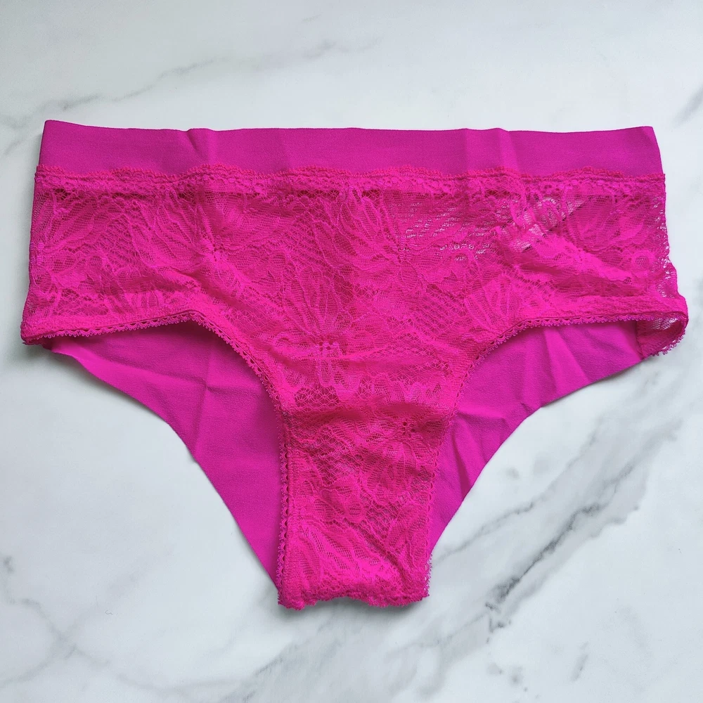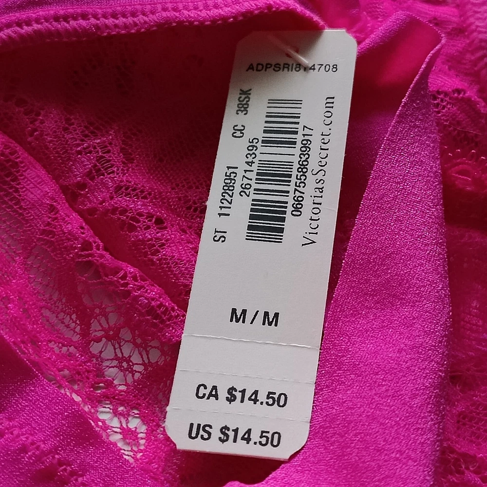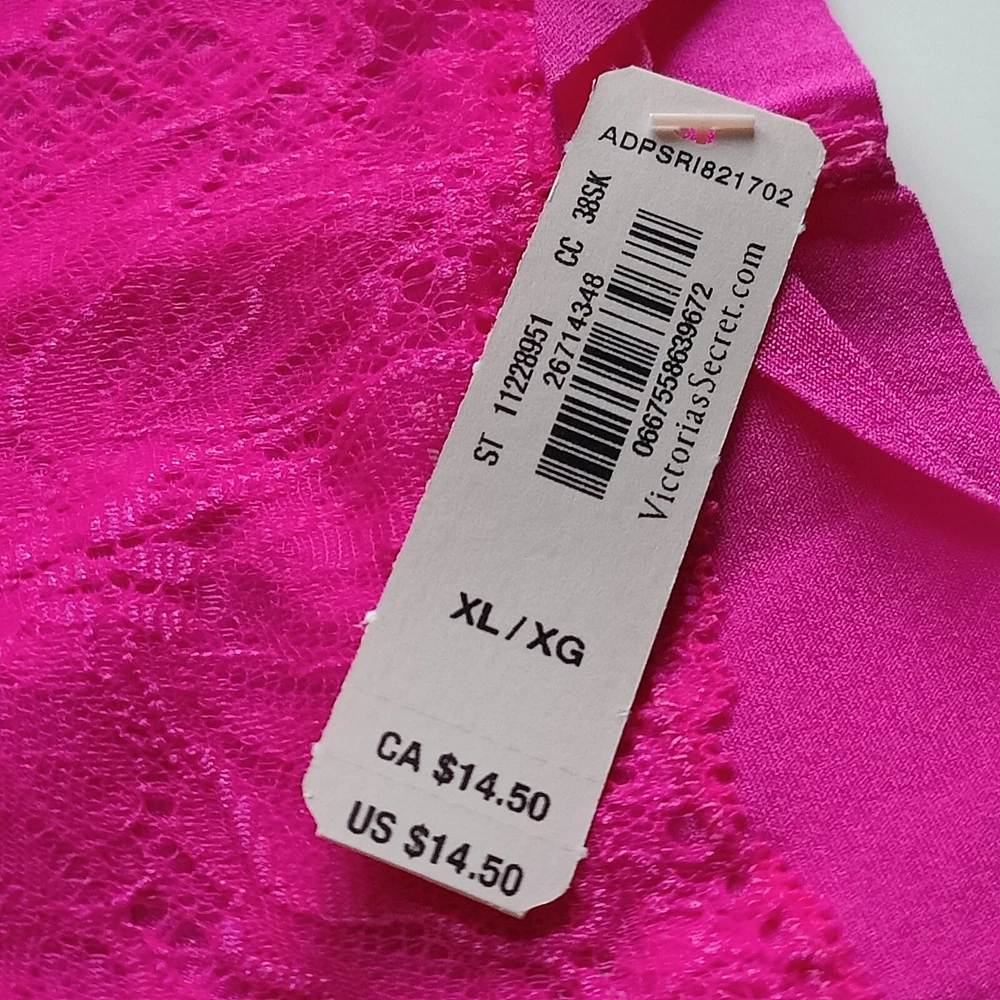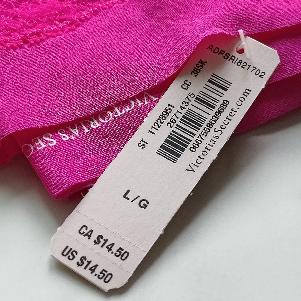 All photos are taken by Goob's Closet & Boutique and may not be reused without permission. Goob's Closet & Boutique lists on multiple platforms. If you choose to wait or "Watch", the listing may sell out on another platform first, and will then no longer be available for purchase on eBay without notice to you. This panty has a cheeky style with just the right amount of back coverage and a flattering mid-rise fit. The microfiber fabric body is super smooth and comfortable, and the raw-cut edges ensure a no-show look under your clothes. The floral sheer lace front panel adds a touch of elegance, and the picot trim at the leg openings gives it a cute finish. Plus, it's made partially from recycled materials, so you can feel good about wearing it. The tag-free design adds to the comfort, and the 100% cotton gusset provides breathability where it’s needed most. Plus, caring for it is super easy—just machine wash it. Details Cheeky Style Cheeky Back Coverage Mid Rise Raw-Cut Edges Microfiber Fabric Body Floral Sheer Lace Front Panel Picot Trim at Leg Openings Made Partially from Recycled Materials Tag-Free Design 100% Cotton Gusset Style No. 11228951 Color: Bali Orchid Color Code (CC): 38SK Material Body: 71% Recycled Polyamide, 29% Elastane Lace: 86% Polyamide, 14% Elastane Gusset: 100% Cotton Care Machine Wash Measurements Victoria's Secret Size Small (S) will fit US Size 4-6, Waist 26-27 inches, Hips 35.5-37.5 inches best. Victoria's Secret Size Medium (M) will fit US Size 8-10, Waist 28-29 inches, Hips 38.5-39.5 inches best. Victoria's Secret Size Large (L) will fit US Size 12-14, Waist 30.5-32 inches, Hips 41-42.5 inches best. Victoria's Secret Size Extra Large (XL) will fit US Size 16-18, Waist 34-36 inches, Hips 44.5-46.5 inches best.