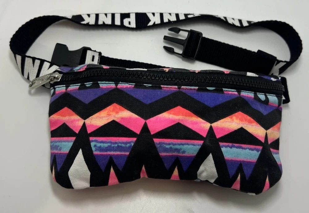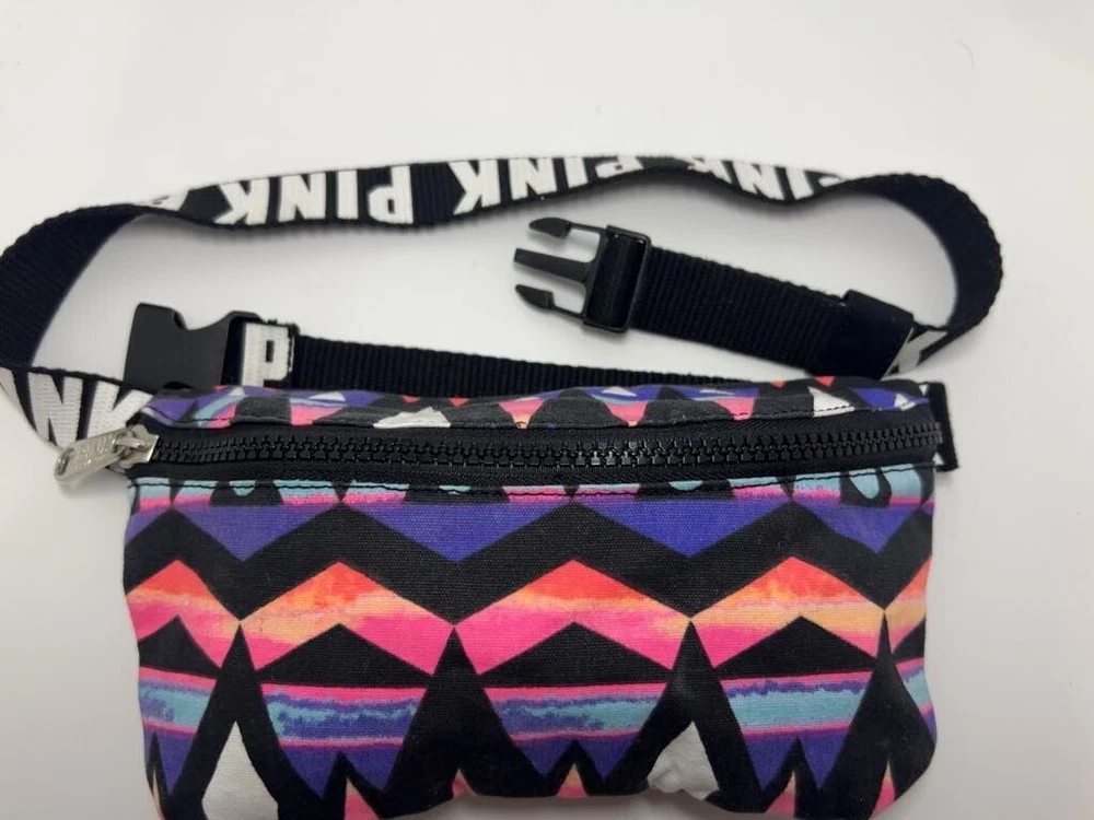 This Victoria's Secret PINK Sport Fanny Pack/Belt Bag is perfect for traveling or working out. The multi-colored geometric pattern is accented with a black zipper and buckle closure. The fanny waist bag is part of the Victoria's Secret Pink product line and is ideal for sports enthusiasts. There are no stains or flaws, and it comes from a smoke-free and pet free home. Any questions please reach out to me. Don't forget to check out my other listings.