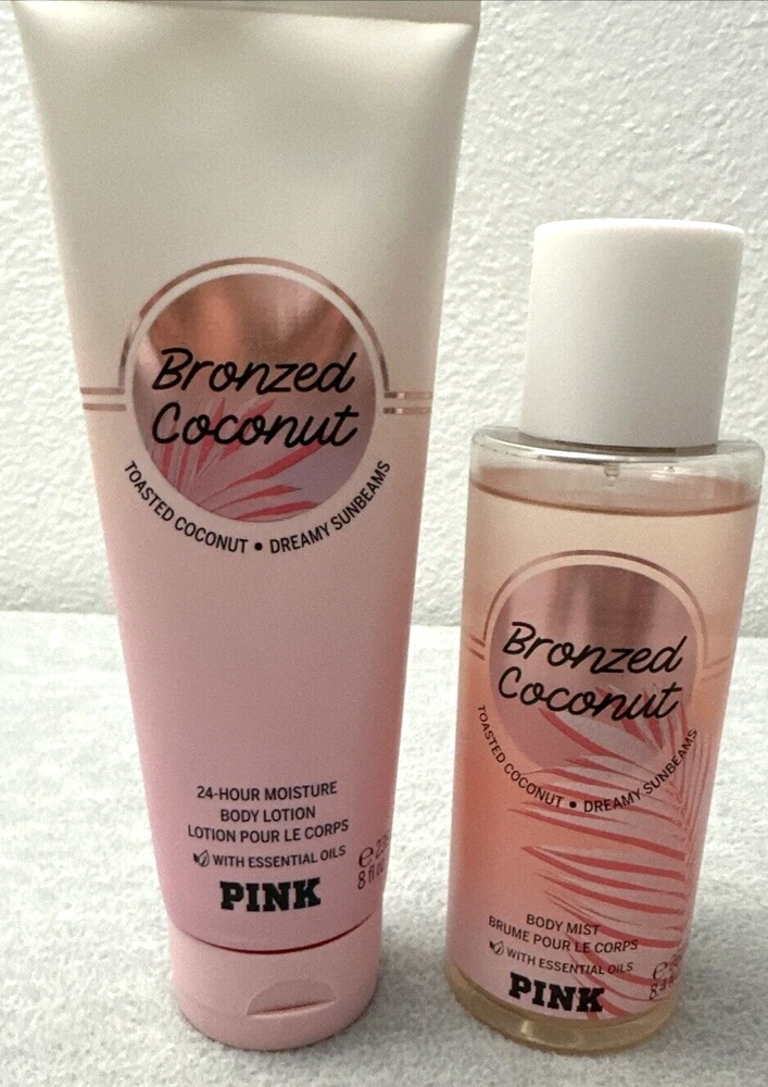 Victoria's Secret Pink Bronzed Coconut Fragrance Mist & Body Lotion 2 PCS Set Pictures are part of the description.