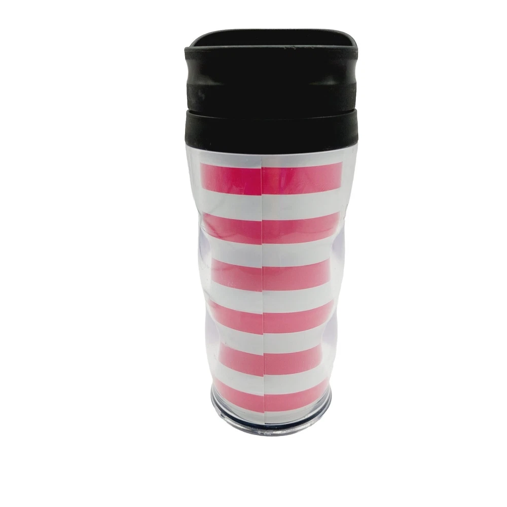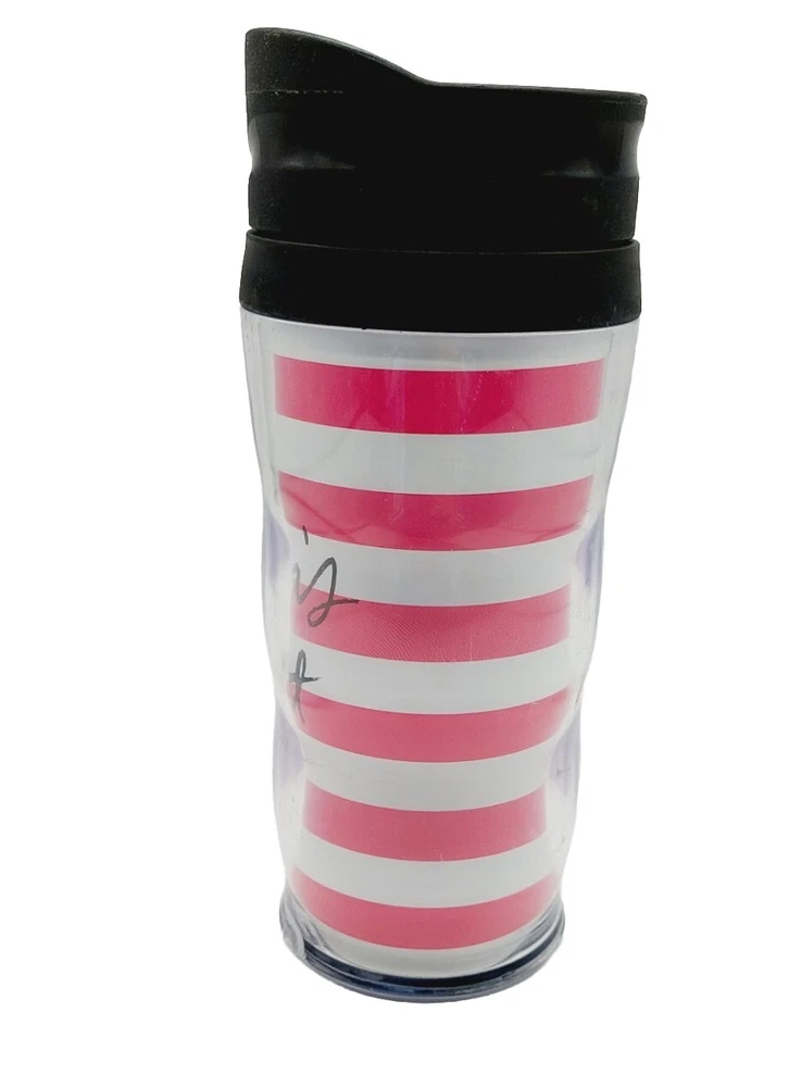 Victoria`s Secret Pink White Striped Tumbler Coffee Cup Mug Thermos Hot / Cold