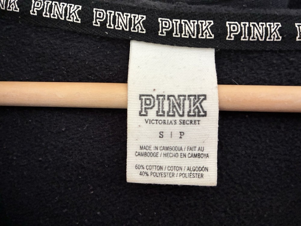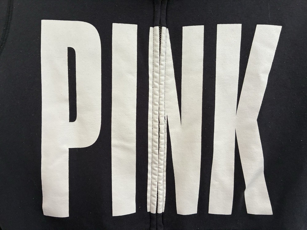 Victoria's Secret Pink Women Logo Cotton Blend Zip Up Long Sleeve Hoodie Black S. Condition is pre-owned. Smoke free, pet free home. Shipped via USPS Ground Advantage. In good condition. There is pilling of the fabric. Free of rips or stains.