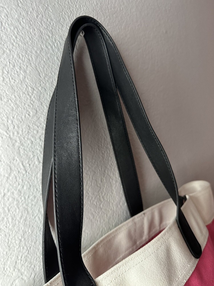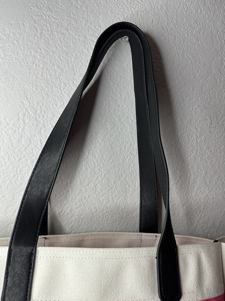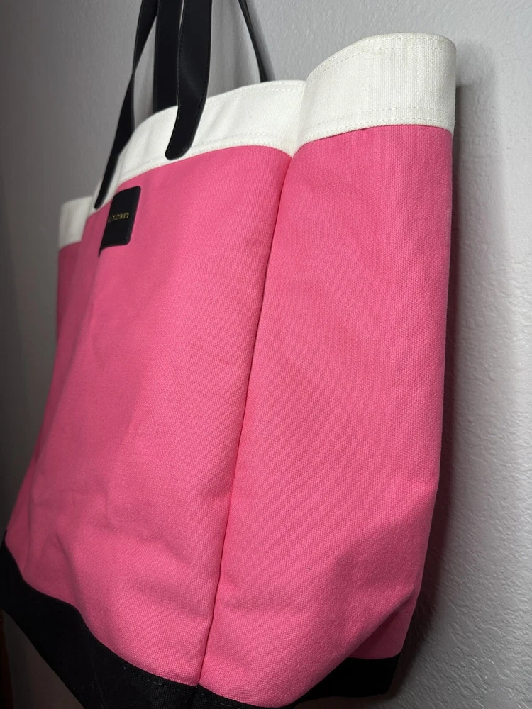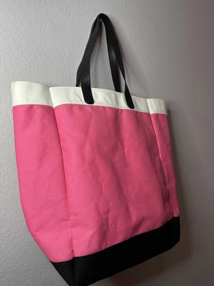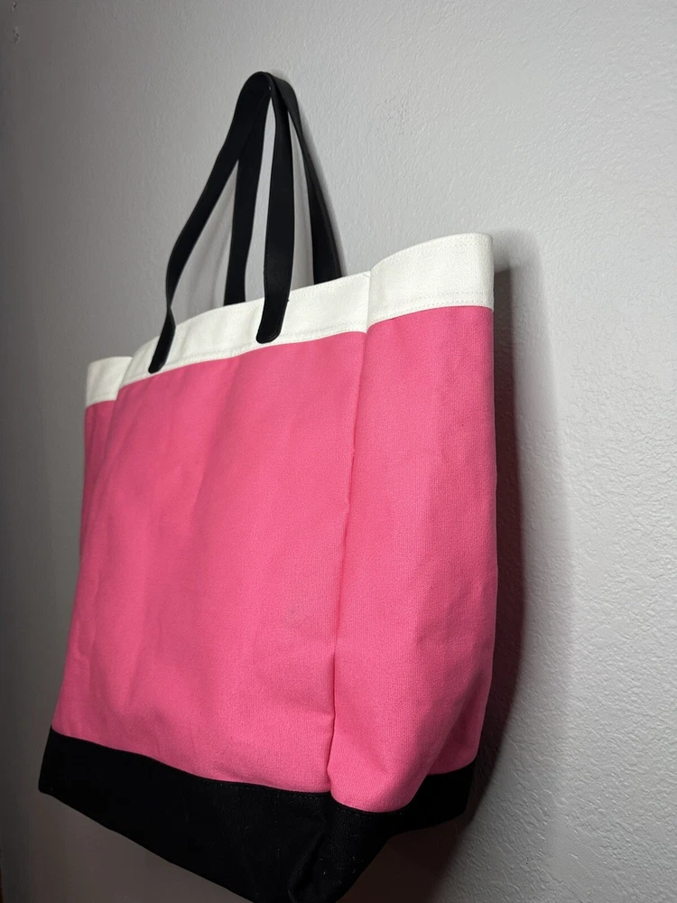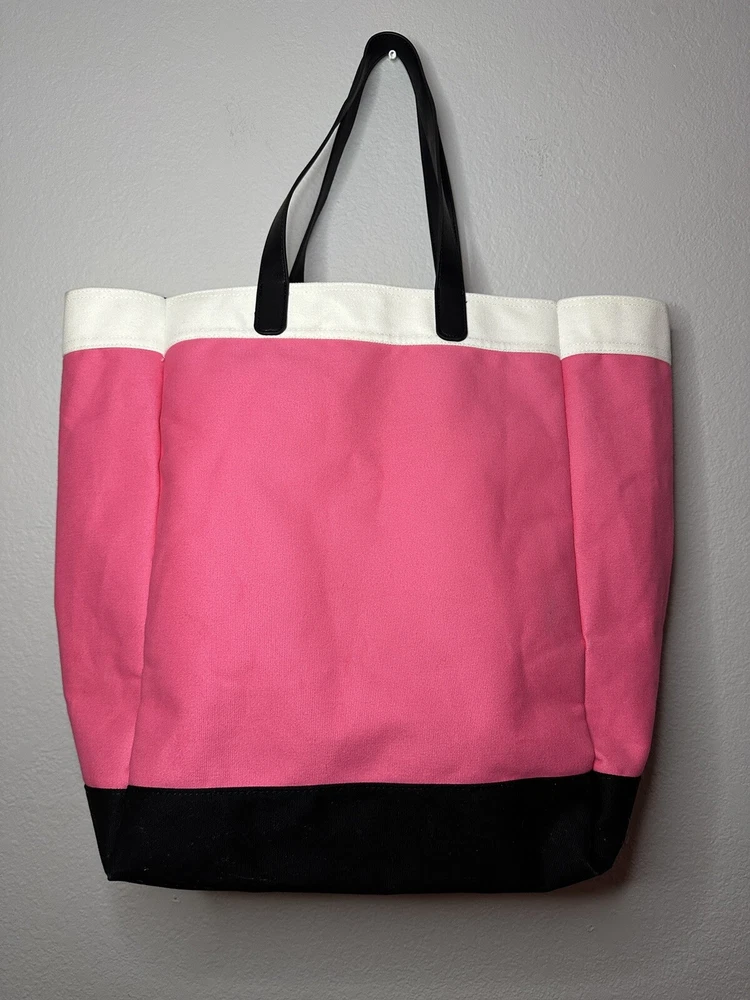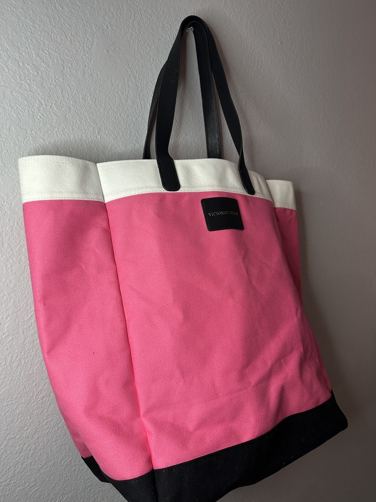 Victoria’s Secret pink and black tote bag. Great size for pool or beach days, travel, or just day to day errands. Measures approximately 13 inches wide, 8 inches deep, and 17 inches tall with 9 inch handle drop. Offers and questions always welcome. Items ship from a smoke free, pet friendly environment.
