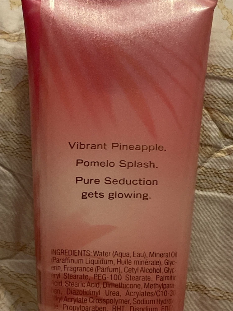 gtin13: 667553848383 Size Type: Regular Size UPC: 667553848383 Vintage Scent (Y/N): No Volume: 8 oz Type: Vibrant pineapple & Pomelo Splash Country/Region of Manufacture: United States Modified Item: No Formulation: Body Lotion Brand: Victoria's Secret Custom Bundle: No Fragrance Name: Pure Seduction Radiant