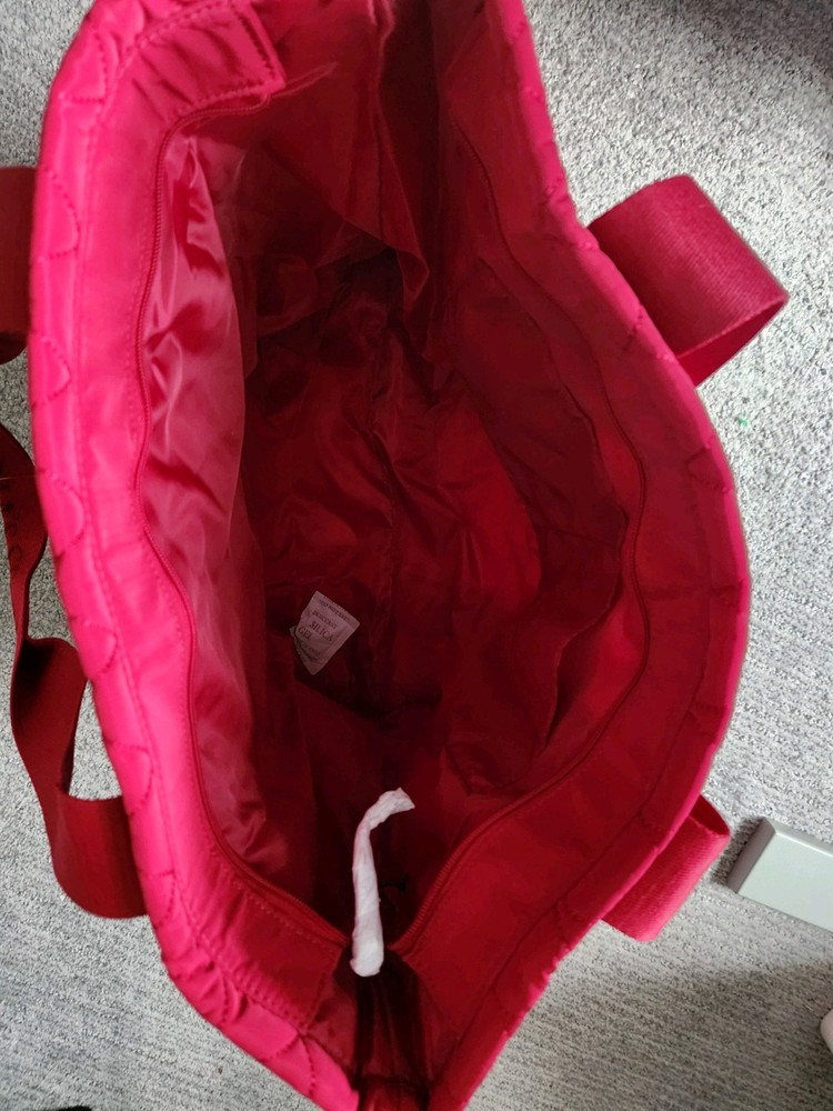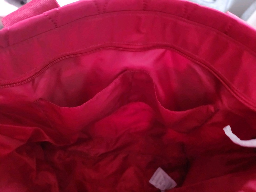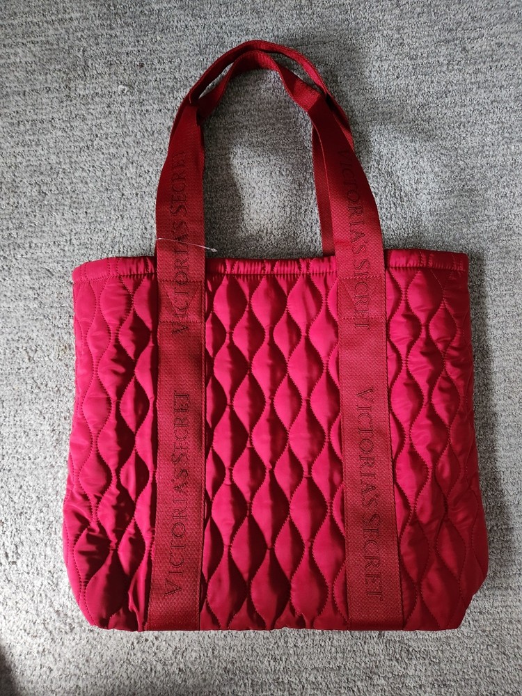 The Victoria's Secret Red Quilted Tote Bag is a stylish and spacious handbag perfect for everyday use. Made from durable polyester material, this tote features a zip closure and double red handles for easy carrying. The quilted finish adds a touch of texture, while the red lining and hardware complement the exterior design. Ideal for women on the go, this large tote from the Victoria's Secret Weekender collection is both fashionable and practical for any occasion.