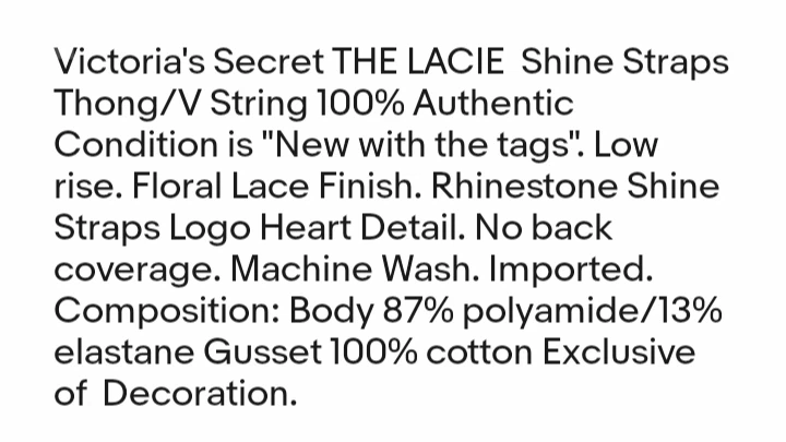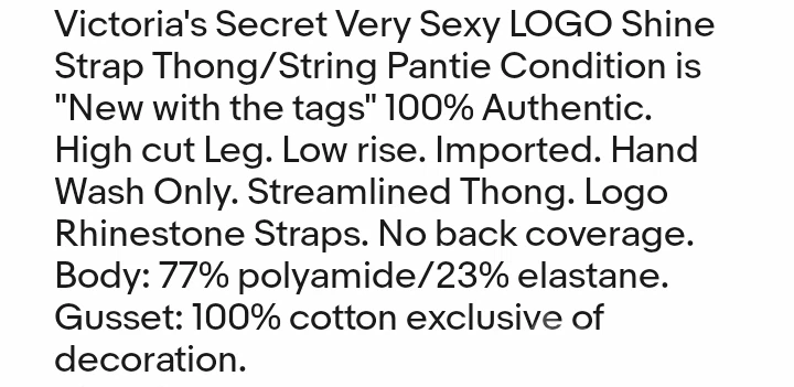 SALE LIMITED TIME!!! GET NOW ENDING SOON Victoria's Secret SHINE STRAP thong pantie. Condition is "New with the tags" 100% Authentic. Here to dazzle: a streamlined thong. Low rise. Rhinestone straps. No back coverage. Imported. NOTE: for more details about the item, you can go to the Selection Menu, then you can check the photos with the product description for each one. FOLLOW ME AND SHARE FOR MORE DEALS CHECK MY OTHERS ITEMS ACCEPT OFFERS!!! Support my small business THANK YOU!!!