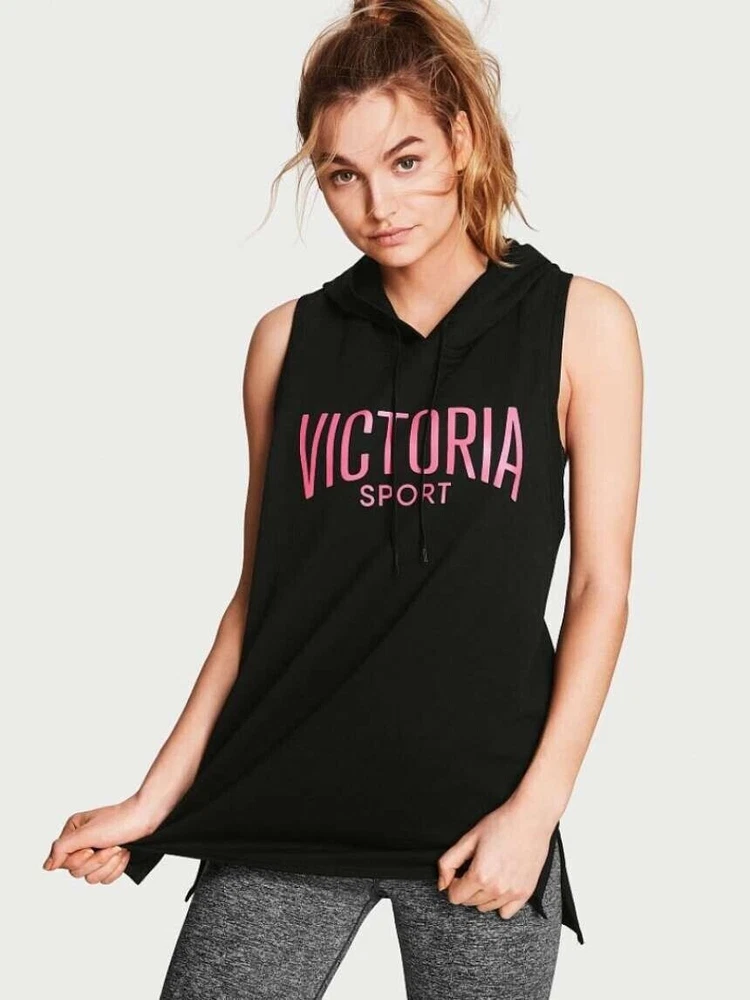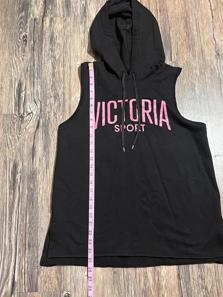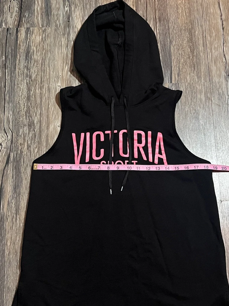 This Victoria's Secret Sport Fleece Boxer Hooded Slub Muscle Tank in black is the perfect addition to your activewear collection. Made with a cotton blend fabric, it is both easy care and lightweight, making it ideal for all seasons. The tank features a drawstring neckline and a relaxed fit, providing comfort during any performance or activity, including cross training, Pilates, basketball, hiking, running and jogging, gym and training, walking, weightlifting, school, dance, CrossFit, skateboarding, and yoga. The tank is machine washable and is part of the Victoria Sport product line. It is perfect for those who appreciate a grunge, dance, hip hop, or sports-themed style. It is in good pre-owned condition. Please zoom in on photos for style, measurements, and condition details.