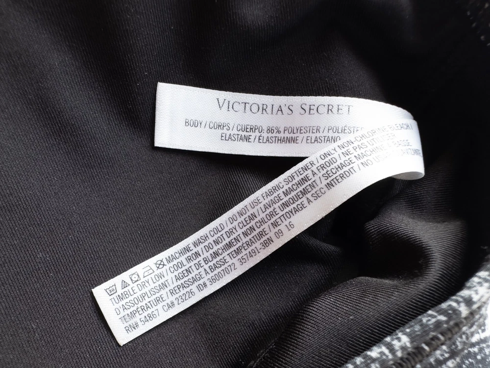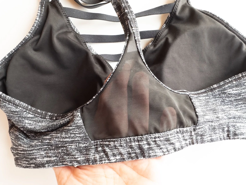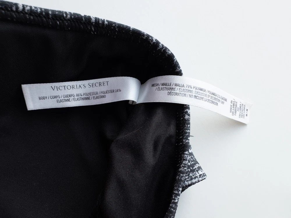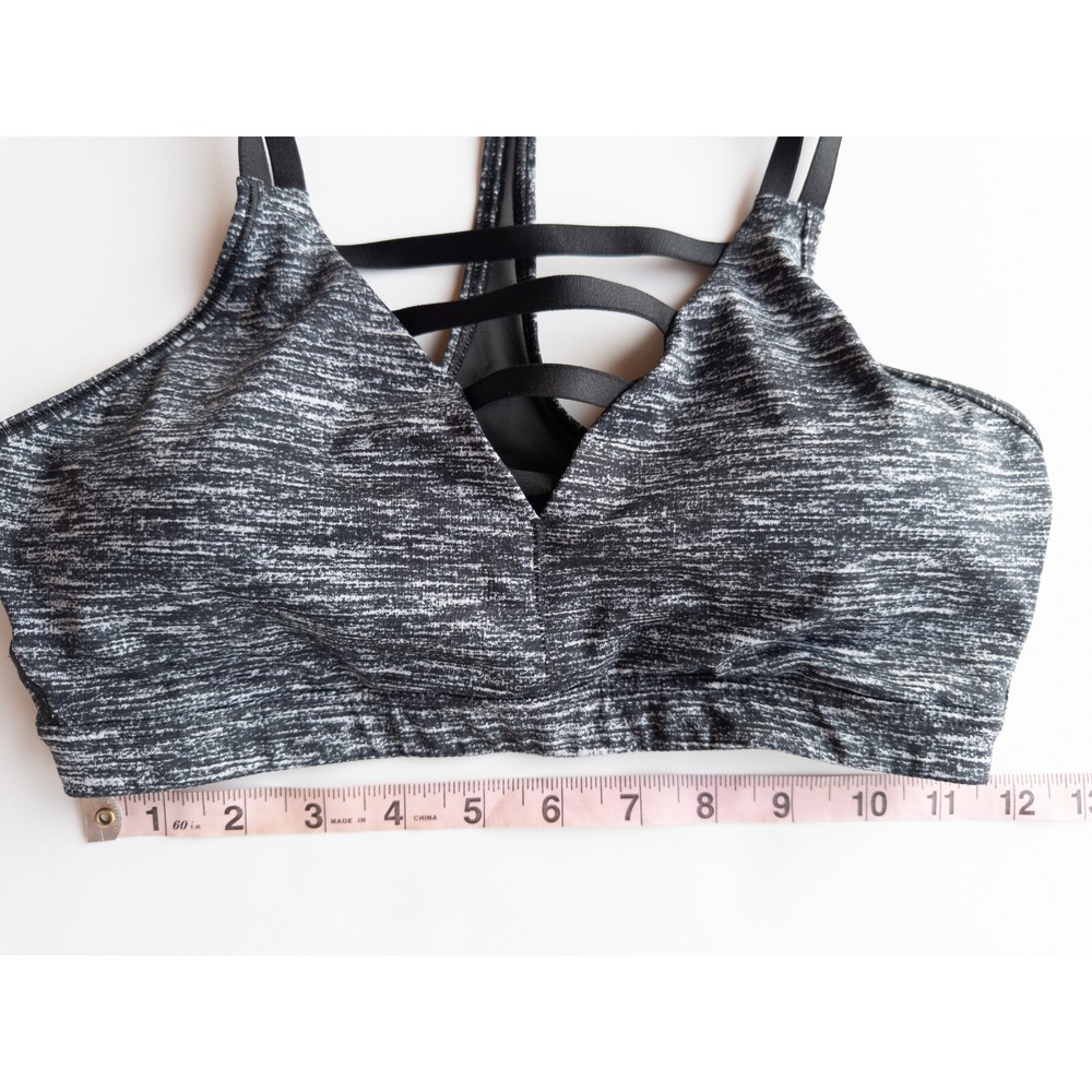 Victorias Secret Strappy V-Neck Sports Bra * Condition: Great pre-owned condition. No stains or holes. Please see photos. * Size: Medium * Band measures approx. 11.5" across when lying flat unstretched * Color: Black/White Spacedye * Material: Body 86% Polyester, 14% Elastane / Mesh 79% Polyamide, 21% Elastane * Plunge v-neckline with strappy cage detail * Strappy racerback/t-back style * Mesh detail on back * Light removable padding * Machine Washable Style Profile: Gym, Athleisure, Fitness, Athletic, Activewear All of my items are stored in a smoke-free, dog-friendly home.