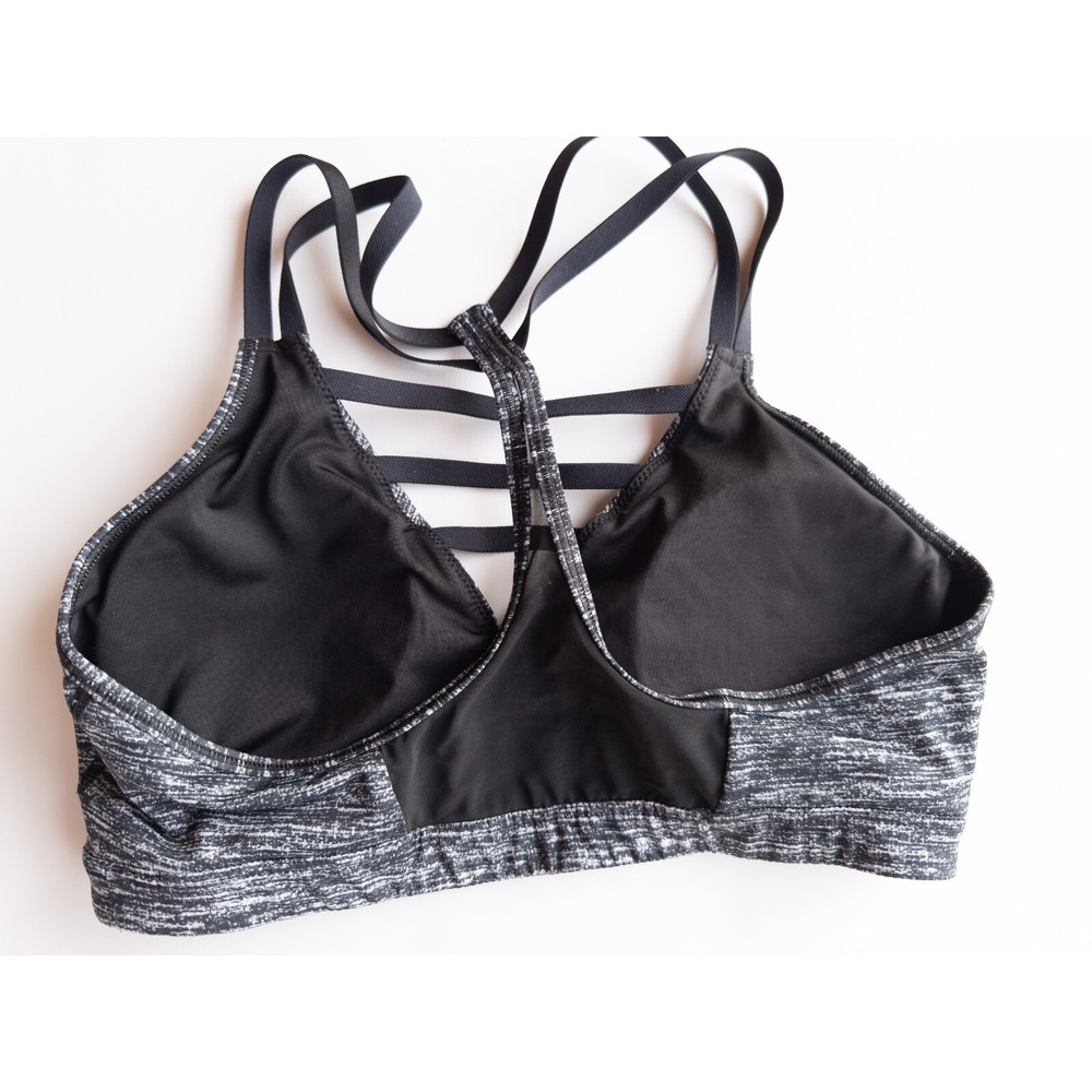 Victoria's Secret Strappy V-Neck Sports Bra - Medium Black & White Spacedye