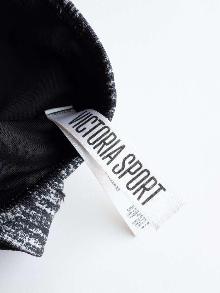 Band Size: M Country/Region of Manufacture: Sri Lanka Closure: Pullover Garment Care: Machine Washable Underwire Type: Wireless Strap Type: Racerback Department: Women Product Line: Victoria Sport Features: Lightweight, Mesh Inserts, Moisture Wicking, Padded, Plunge, Removable Pads, Stretch Color: Black Cup Coverage: Full Personalize: No Size: M Fabric Type: Blended Fabric Brand: Victoria's Secret Seller Notes: “Great pre-owned condition. No stains or holes. Please see photos.” Pattern: Spacedye Occasion: Activewear Performance/Activity: Athleisure, Cross Training, Gym & Training, Pilates, Walking, Weightlifting, Yoga Accents: Strap Type: Bra Material: Polyester, Elastane Style: Sports Bra Size Type: Regular