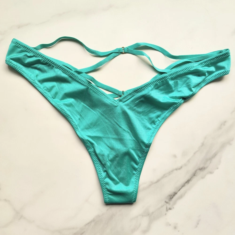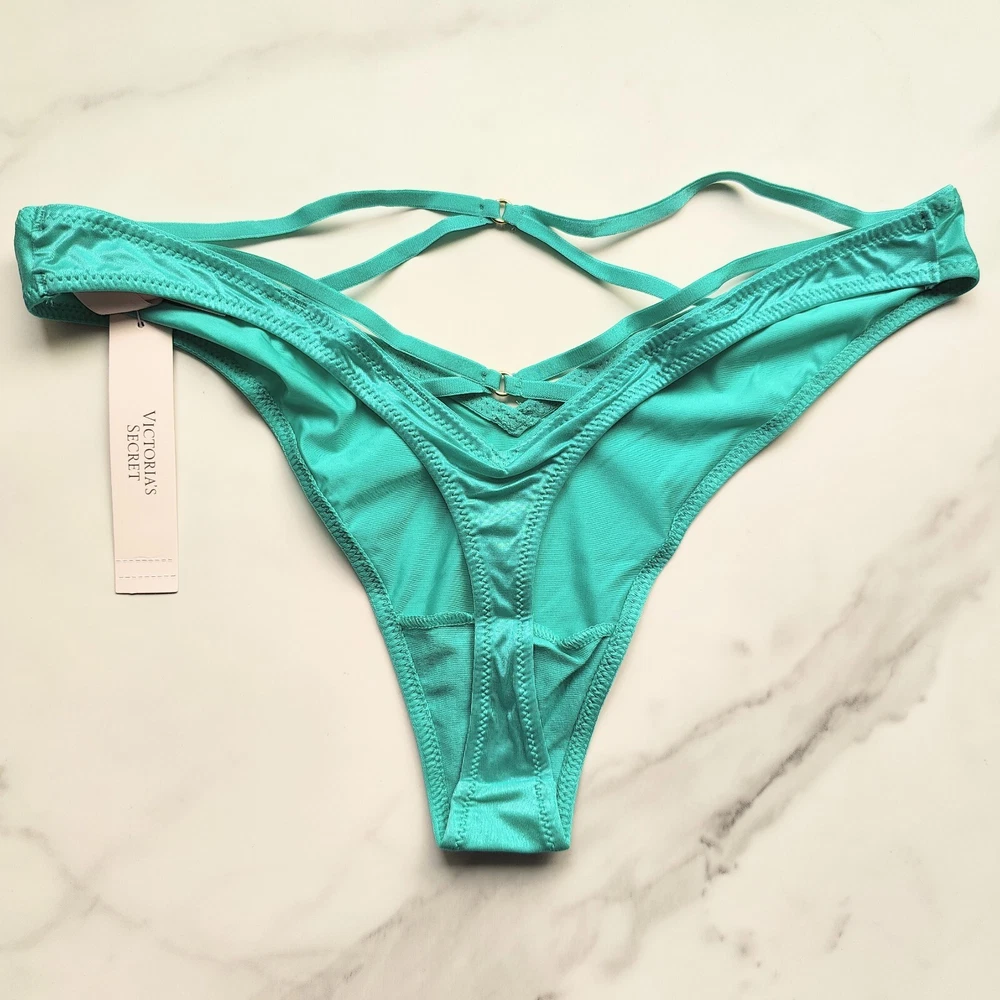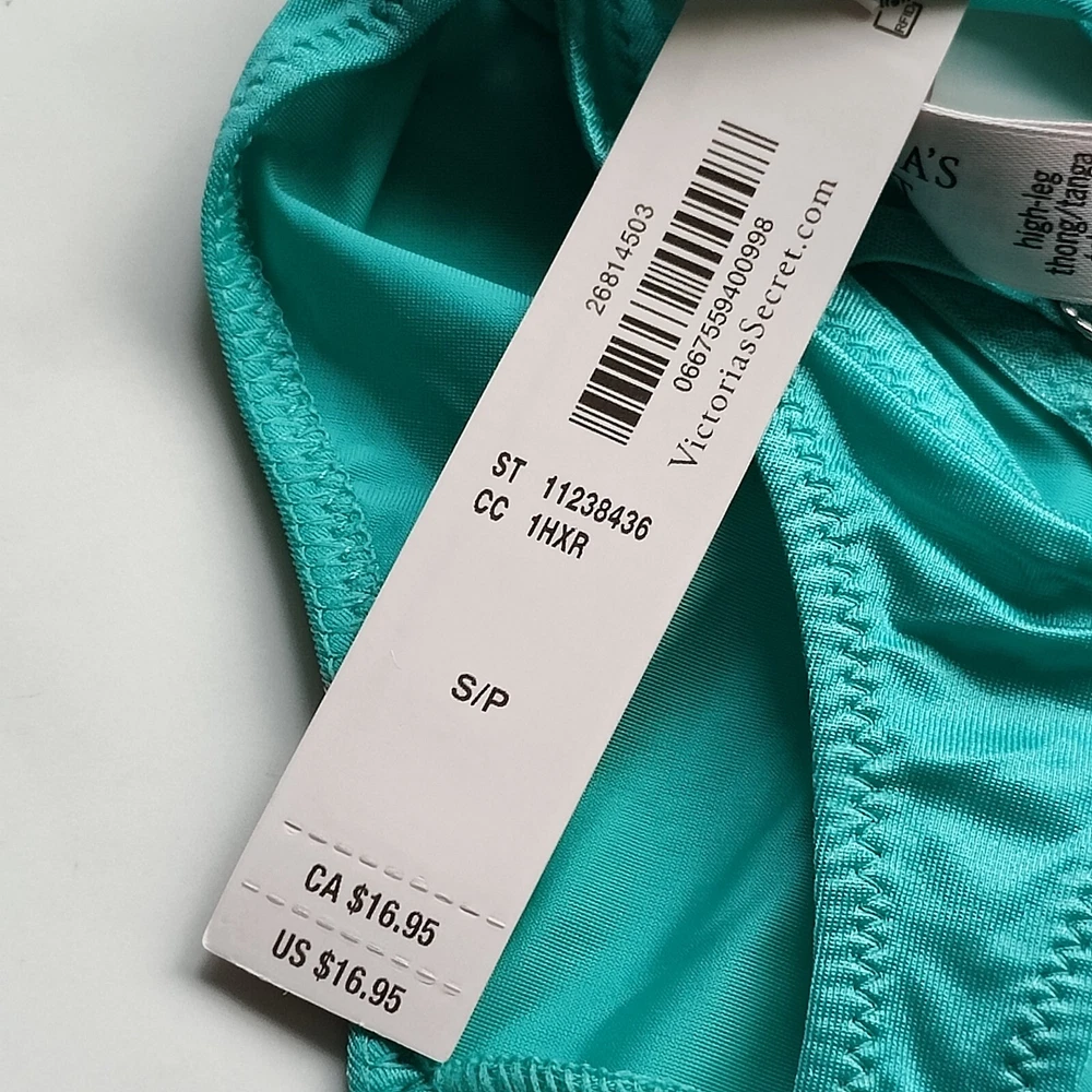 All photos are taken by Goob's Closet & Boutique and may not be reused without permission. Goob's Closet & Boutique lists on multiple platforms. If you choose to wait or "Watch", the listing may sell out on another platform first, and will then no longer be available for purchase on eBay without notice to you. With its minimal back coverage and low-rise design, this panty sits perfectly on your hips, giving you that sleek and sexy look. The high-cut leg openings elongate your legs, while the soft and stretchy microfiber fabric feels incredibly smooth against your skin. The strappy details at the back, accented with gold-tone hardware, add a touch of intrigue, making this thong not just an undergarment but a statement piece. Plus, it’s partially made from recycled materials, so it’s a choice that’s both stylish and sustainable. And the 100% cotton gusset ensures all-day comfort, making it a perfect blend of fashion and function. Details Thong Style Minimal Back Coverage Low Rise High-Cut Leg Openings Soft and Stretchy Lightweight Microfiber Fabric Elastic Waist and Leg Openings Elastic Strappy Details at Back Gold Tone Hardware Made Partially from Recycled Materials 100% Cotton Gusset Style No. 11238436 Color: Aqua Sea CC (Color Code): 1HXR Material Body: 77% Recycled Polyamide, 23% Elastane Gusset: 100% Cotton Care Machine Wash Measurements Victoria's Secret Size Small (S) will fit US Size 4-6, Waist 26-27 inches, Hips 36.5-37.5 inches best. Victoria's Secret Size Medium (M) will fit US Size 8-10, Waist 28-29 inches, Hips 38.5-39.5 inches best. Victoria's Secret Size Large (L) will fit US Size 12-14, Waist 30.5-32 inches, Hips 41-42.5 inches best. Victoria's Secret Size Extra Large (XL) will fit US Size 16-18, Waist 34-36 inches, Hips 44.5-46.5 inches best.