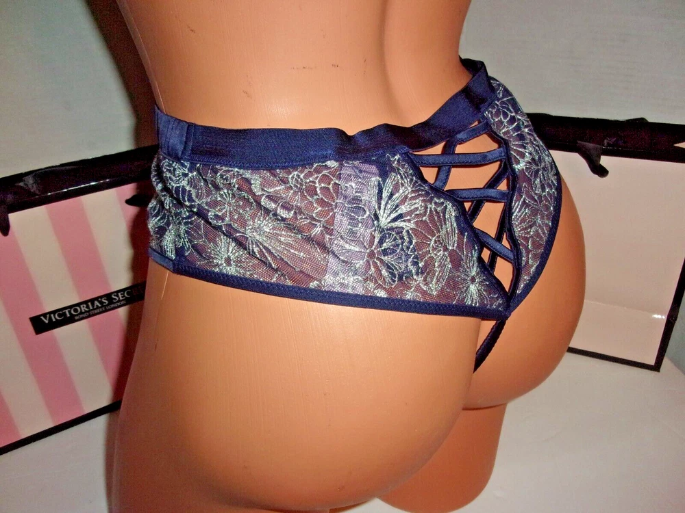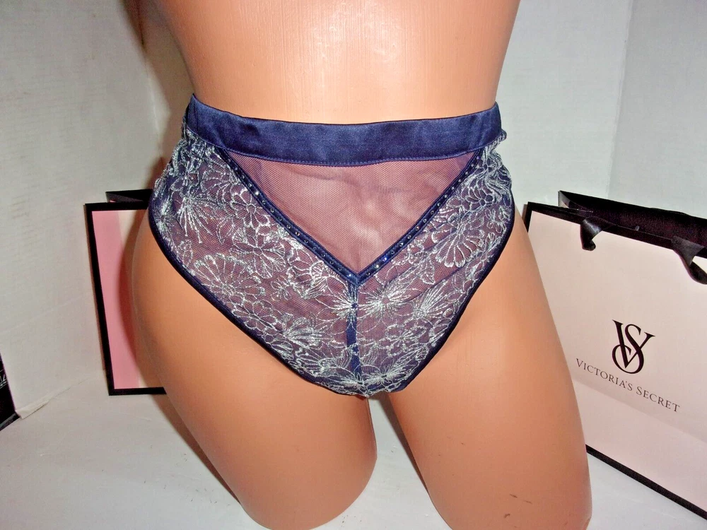 Victoria's Secret high waist thong navy~metallic silver rhinestone sparkle S