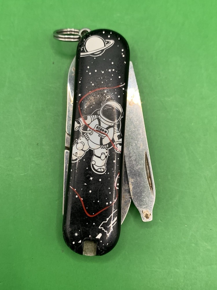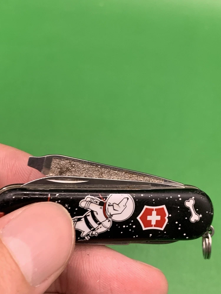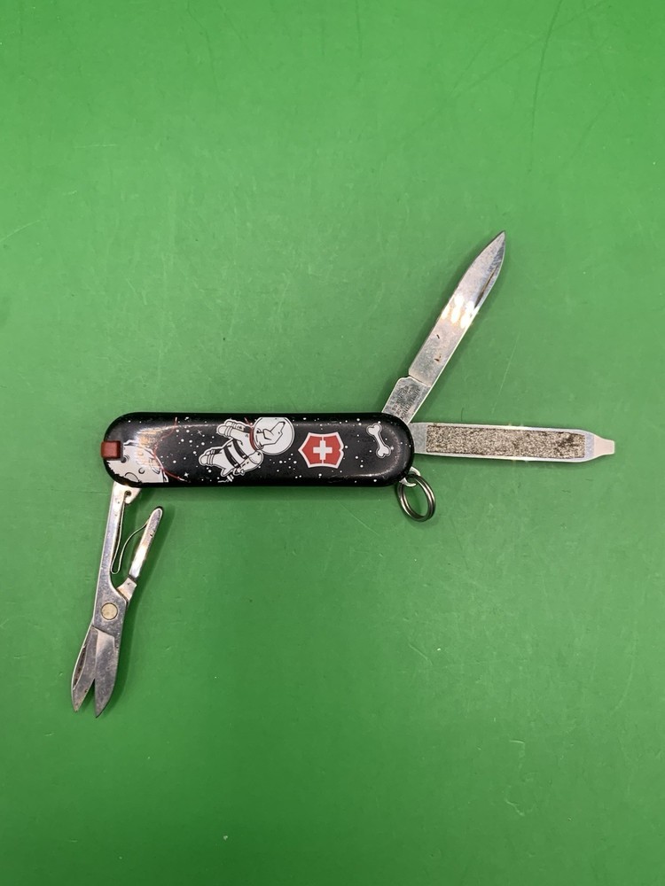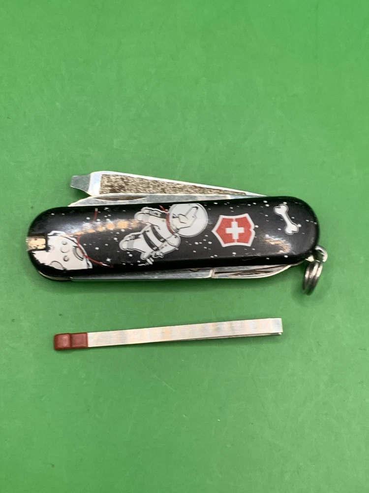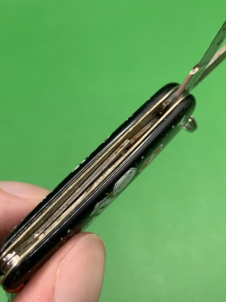 Used Victorinox knife. Scales have minimal to no wear on them and the blades may need to be sharpened. The nail file opening mechanism is broken and won’t lock into place and the nail file can’t close all the way due to the damage. No toothpick. See pictures for overall cosmetic condition. By purchasing you affirm that you are of legal age and aware of all applicable laws.