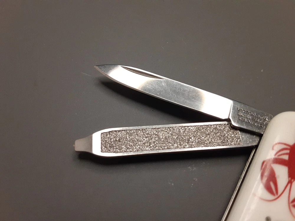 Color: Multi Non-Domestic Product: No Blade Type: Pen Number of Blades: 1 Blade Edge: Plain Lock Type: Slipjoint Blade Range: Under 2.75in. Dexterity: Ambidextrous Tools: Nail File, Scissors Handle Material: Plastic Type: Pocketknife Opening Mechanism: Manual Brand: Victorinox Model: Classic Original/Reproduction: Original Modified Item: No Country/Region of Manufacture: Switzerland Custom Bundle: No Blade Material: Stainless Steel