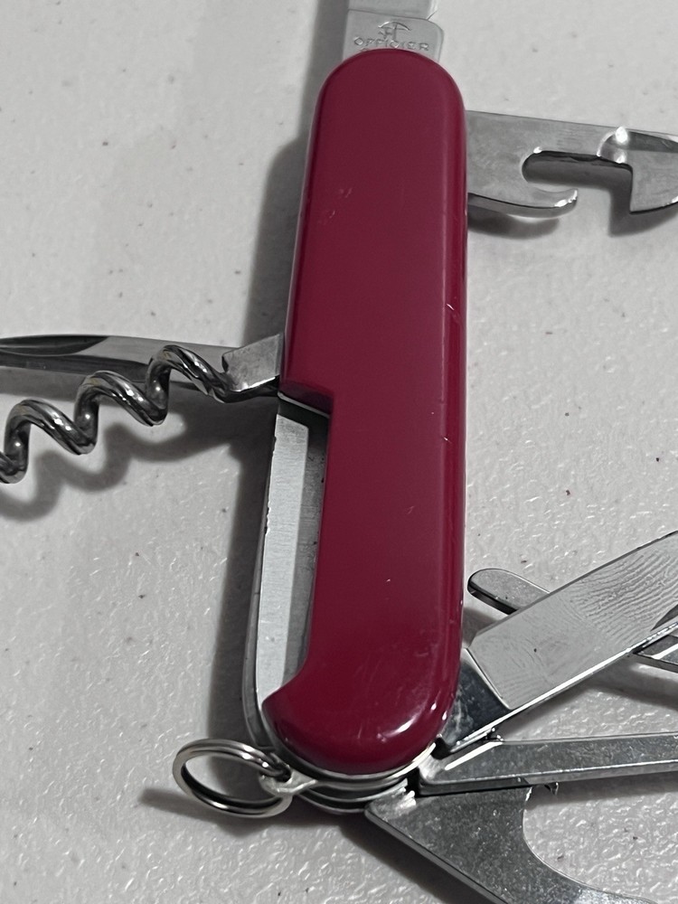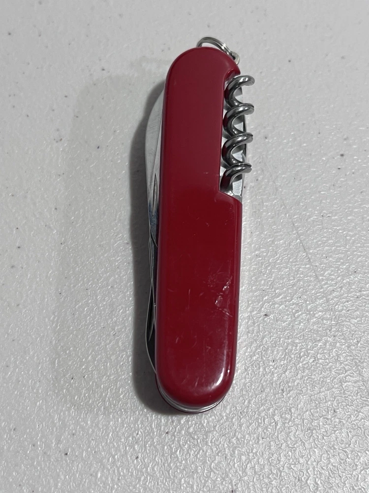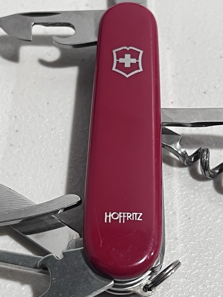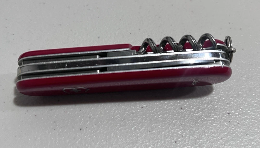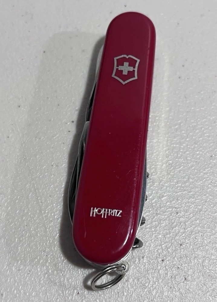 Original/Reproduction: Original Country/Region of Manufacture: Switzerland Blade Type: Drop Point, Spear Point Number of Blades: More than 4 Color: Red Brand: Victorinox Blade Material: Stainless Steel Dexterity: Ambidextrous Model: Hoffritz Lock Type: Slipjoint Blade Edge: Plain Product Line: swiss Army Handle Material: Plastic Type: Pocketknife Tools: Bottle Opener, Corkscrew, Scissors, Knife Opening Mechanism: Manual