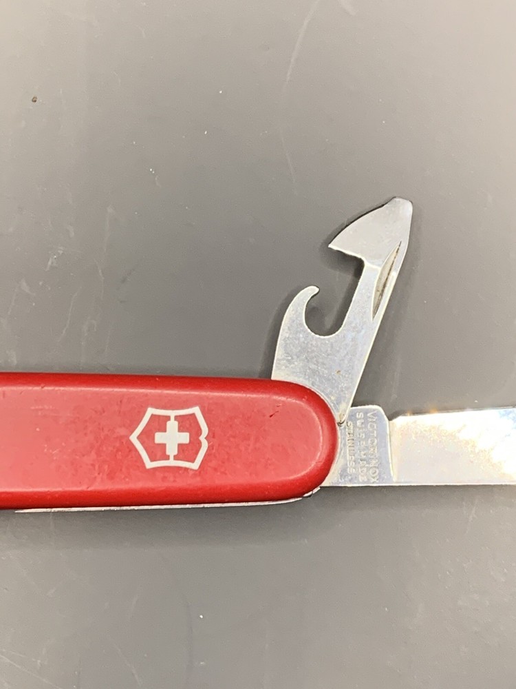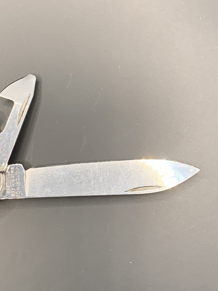 Used Victorinox knife. Handles have some wear and the blades may need to be sharpened. See pictures for overall cosmetic condition. By purchasing you affirm that you are of legal age and aware of all applicable laws.