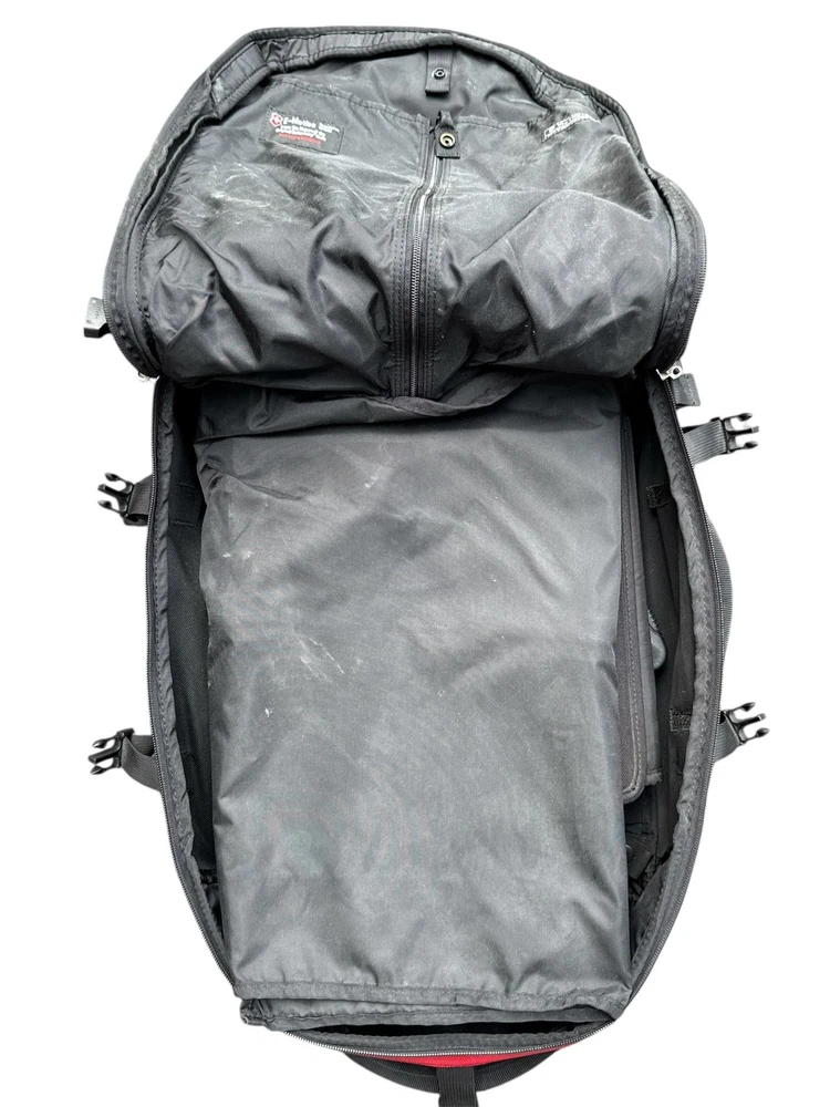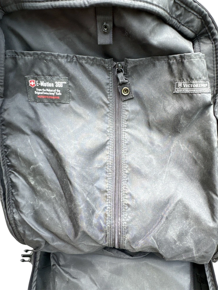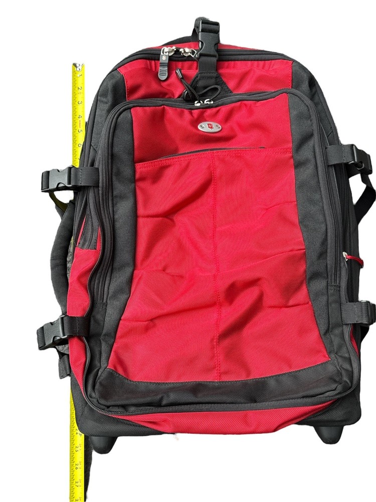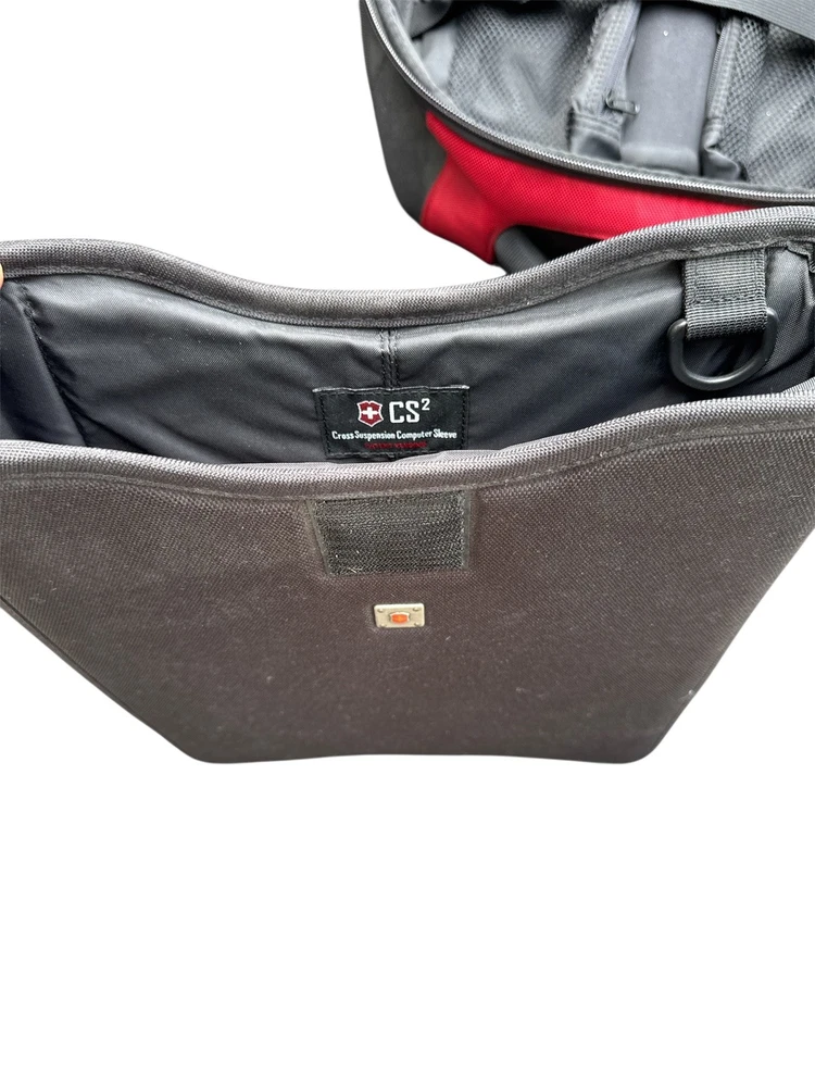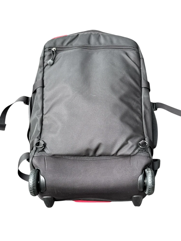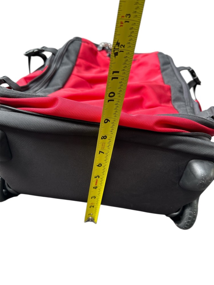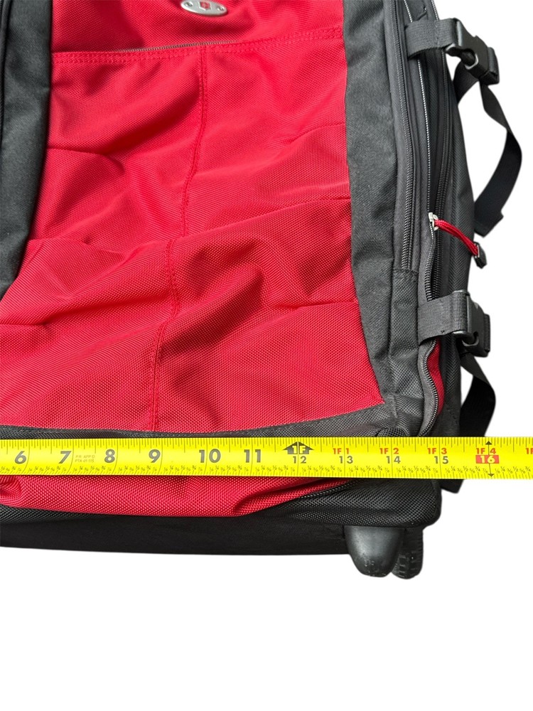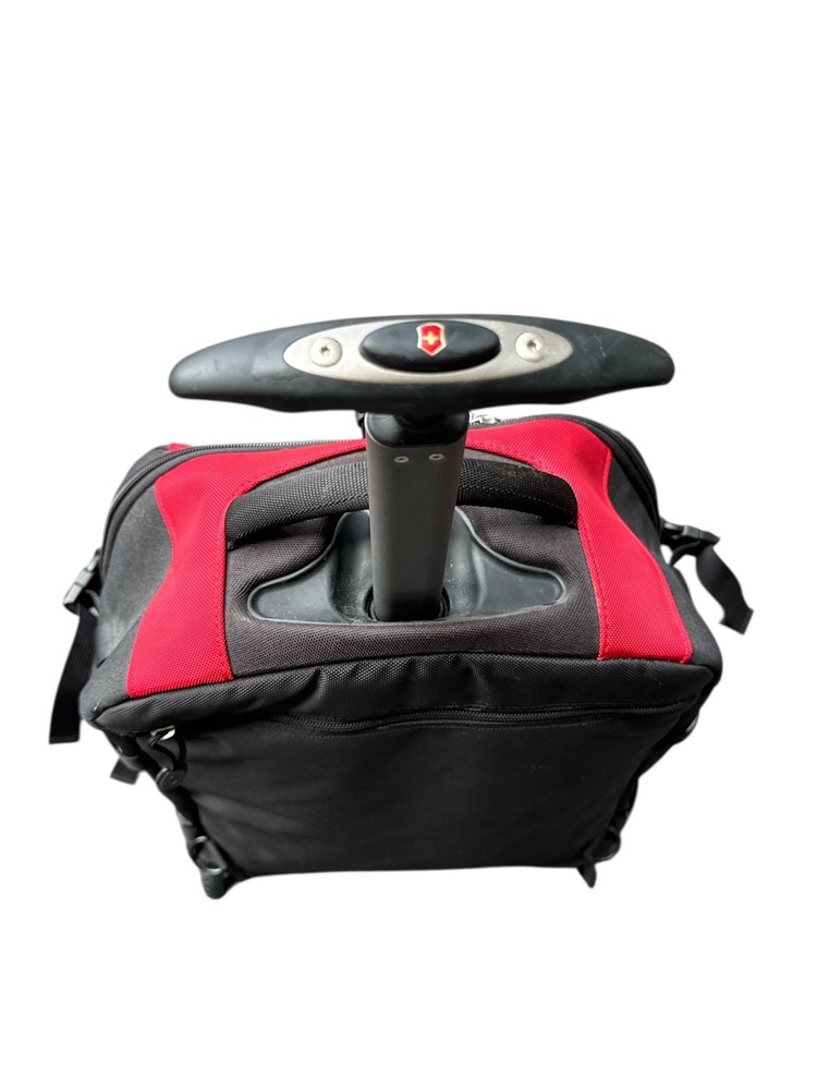 The Victorinox Swiss Army E-motion 360 Black & Red 24" Exp Wheeled Suitcase Luggage is a durable and functional suitcase designed for travel. With a solid black and grey color scheme and adjustable straps, this expandable suitcase is made of lightweight nylon material for easy transportation. The suitcase features a retractable handle, wheels for rolling, and an upright design for organization. Suitable for both men and women, this suitcase is perfect for any unisex adult on the go. Excellent used condition