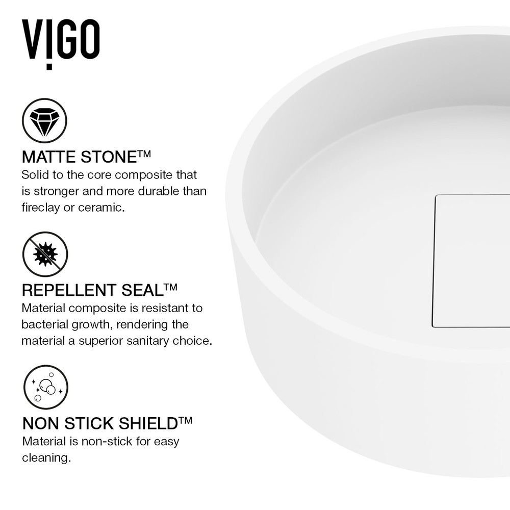 White Matte Stone Vessel Sink 18 Inch Jasmine Design Vigo VG04013