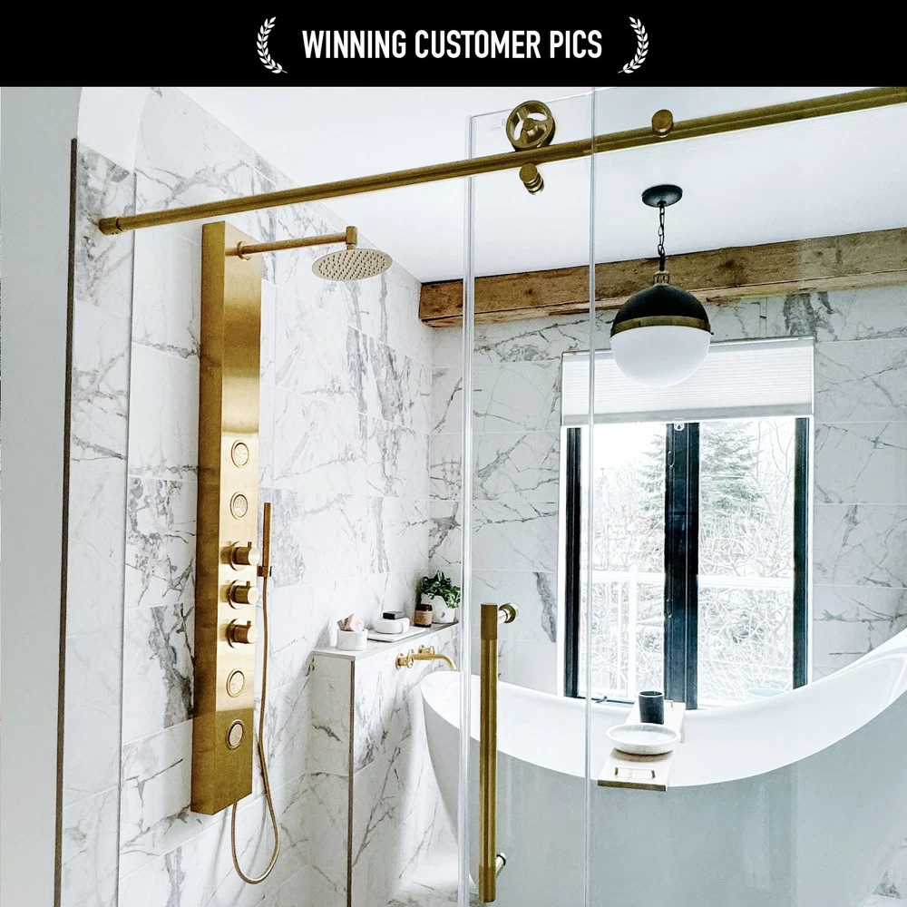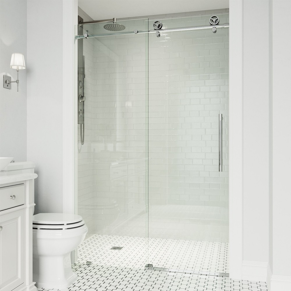 Powered by Frooition Top Products Kitchen Bathroom Lighting Fans Hardware Decor & Organization Vigo VG6044CL5276 Elan Cass 76" High x 52" Wide Sliding Frameless Shower Door with Clear Glass Overview Item Description Experience a quieter, more relaxing shower experience with The Cass Collection. With sleek lines, concealed screws, plus elevated heights, The Cass Collection by VIGO is home to a striking shower door. Inspired by the power and silence of the wind, this frameless glass shower door features sleek aerodynamic rollers that deliver smooth, air gliding open and closure. Rich finished hardware details add elegance to high-quality glass doors while the vertical door handle supports inviting walk-in shower entry. Choose between left or right-side opening for a custom installation. Innovative technology features ensure seamless, fast installation and a lifetime of use. Vigo VG6044CL5276 Features: Covered under Vigo's limited lifetime warranty Constructed of durable 3/8" thick tempered glass and complemented by stainless steel profiles and guide rails Coordinates with products from the Cass line A frameless design gives a modern, sleek look to the shower Sliding shower door operation acts as a space saver for smaller bathrooms This is a shower door only - a shower base and walls may be required to complete unit NOTE: The biggest challenge in selecting the correct shower door is determining the finished opening width - be sure your desired opening measures between the "Enclosure Width Range" note below Vigo VG6044CL5276 Specifications: Overall Height: 76" (bottom to top of door fixture) Overall Width: 52" (left to right of door fixture) Enclosure Width Range: 48" to 52" (range of enclosure sizes door will accommodate) Maximum Door Opening: 28" (assuming door is not trimmed) Glass Thickness: 3/8" Why Choose BuildInc? OUR PROMISE TO YOU About Us At Build, we promise to provide the best selection we can, most competitive pricing, and unmatched customer service. Our store has quality home improvement products from trusted manufacturers like Moen, American Standard, Delta, Kraus, Kichler, Progress Lighting, Schlage, Kwikset, Baldwin, Broan, NuTone, Air King, and Rev-A-Shelf. With over 200,000 home improvement products for you to choose from, we have just what you need to get your project done. Fast & Free Shipping We promise to make it our priority to get you your items as fast as we can. We ship from 440 warehouses around the country, ensuring that your product will get to you as soon as possible. We know you're eager to get your hands on your new purchase, we would be too. As a bonus, most items ship for free. Returns We are happy to accept returns of unused or defective items for a refund within 30 days from the date of delivery. For returns outside 30 days, please contact our Customer Service team to go over our options. For full details, please view the Shipping and Payments tab above. To initiate a return simply go to the eBay Returns Portal and submit a return request. We ask that all items be returned with all original components via a traceable method. Once your return is received and processed, we will quickly get your refund or replacement issued. If for any reason you are unsatisfied with your purchase or for product or warranty questions, please contact Customer Service team for assistance. More Items! View more great items Elco ELK3341 The Koto System 3" Square Reflector Trim - White $43.56 Eurofase Lighting 46772 Atomo 56"W 3000K LED Abstract Linear - Gold $2,294.00 JONATHAN Y Lighting SMB109-8SQ Santa Monica 7-3/4' x 7-3/4' - MultiColor $110.40 Livex Lighting 49866 Calinda 7 Light 25"W Drum Chandelier - Gold $1,069.90 About Us | Shipping | Returns | Contact Us | FAQ | Collections | Special Offers! Powered by Frooition Frooition Frooition | No-js Template | eBay design, eBay store design, eBay shop design, eBay template design, eBay listing design (ver:froo_no_js) This listing is currently undergoing maintenance, we apologize for any inconvenience caused.
