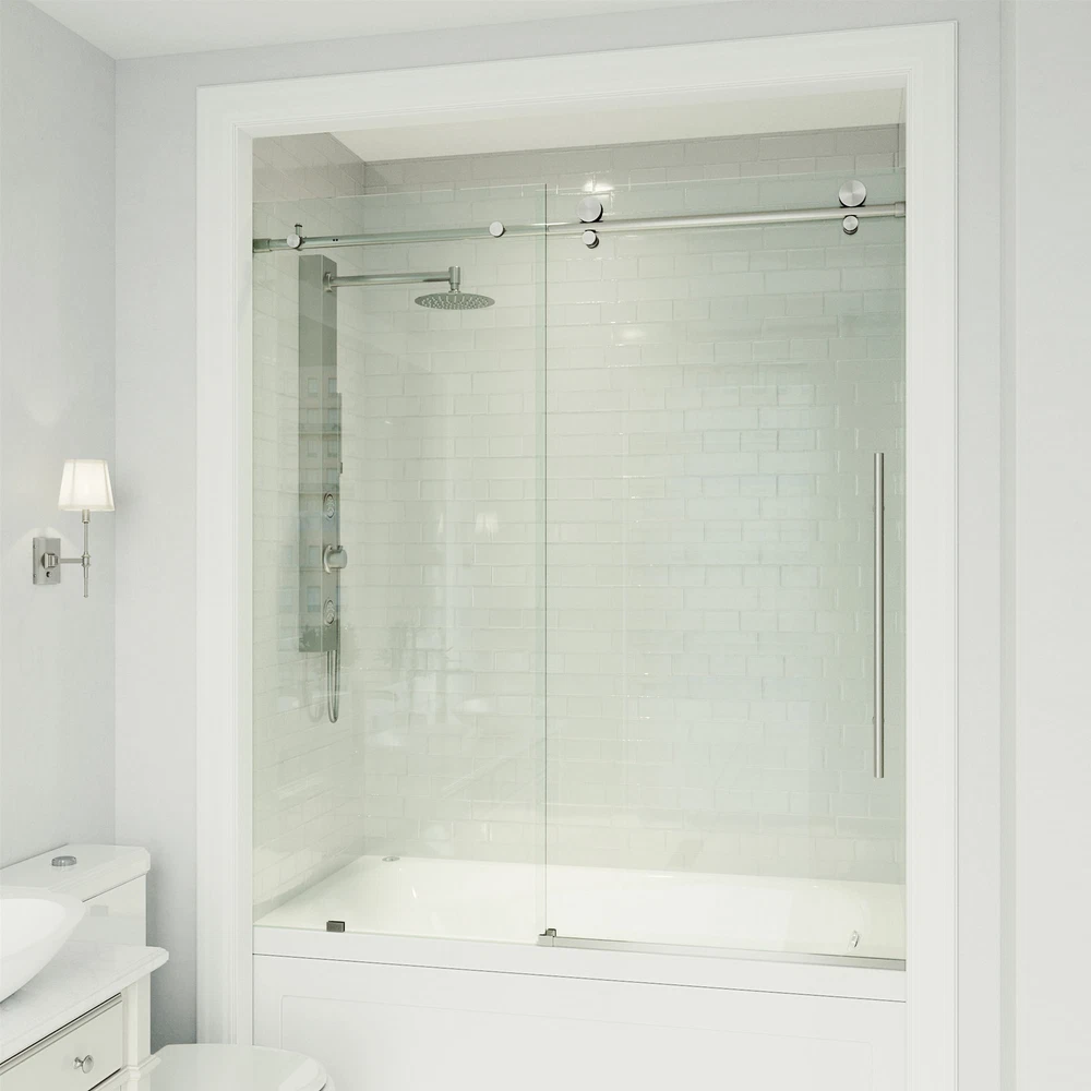 Powered by Frooition All Categories Vigo VG6021CL6066 Elan E-Class 66" High x 60" Wide Sliding Frameless Tub Door with Clear Glass Overview Item Description Vigo VG6021CL6066 Features: Covered under Vigo's limited lifetime warranty and 1 year limited commercial warranty Constructed of durable 3/8" thick tempered glass and complemented by stainless steel profiles and guide rails Coordinates with products from the Elan line A frameless design gives a modern, sleek look to the shower Sliding shower door operation acts as a space saver for smaller bathrooms Door opens to the left or right depending upon installation configuration All hardware required for installation of shower door is included This is a shower door only - a shower base and walls may be required to complete unit NOTE: The biggest challenge in selecting the correct shower door is determining the finished opening width - be sure your desired opening measures between the "Enclosure Width Range" note below Vigo VG6021CL6066 Specifications: Overall Height: 66" (bottom to top of door fixture) Overall Width: 60" (left to right of door fixture) Enclosure Width Range: 56" to 60" (range of enclosure sizes door will accommodate) Maximum Door Opening: 32" (assuming door is not trimmed) Opening Direction: Reversible Glass Thickness: 3/8" Why Choose BuildInc? OUR PROMISE TO YOU About Us At Build, we promise to provide the best selection we can, most competitive pricing, and unmatched customer service. Our store has quality home improvement products from trusted manufacturers like Moen, American Standard, Delta, Kraus, Kichler, Progress Lighting, Schlage, Kwikset, Baldwin, Broan, NuTone, Air King, and Rev-A-Shelf. With over 200,000 home improvement products for you to choose from, we have just what you need to get your project done. Fast & Free Shipping We promise to make it our priority to get you your items as fast as we can. We ship from 440 warehouses around the country, ensuring that your product will get to you as soon as possible. We know you're eager to get your hands on your new purchase, we would be too. As a bonus, most items ship for free. Returns We are happy to accept returns of unused or defective items for a refund within 30 days from the date of delivery. For returns outside 30 days, please contact our Customer Service team to go over our options. For full details, please view the Shipping and Payments tab above. To initiate a return simply go to the eBay Returns Portal and submit a return request. We ask that all items be returned with all original components via a traceable method. Once your return is received and processed, we will quickly get your refund or replacement issued. If for any reason you are unsatisfied with your purchase or for product or warranty questions, please contact Customer Service team for assistance. More Items! View more great items! About Us | Shipping | Returns | Contact Us | FAQ | Collections | Special Offers! Powered by Frooition Frooition Frooition | No-js Template | eBay design, eBay store design, eBay shop design, eBay template design, eBay listing design (ver:froo_no_js) This listing is currently undergoing maintenance, we apologize for any inconvenience caused.