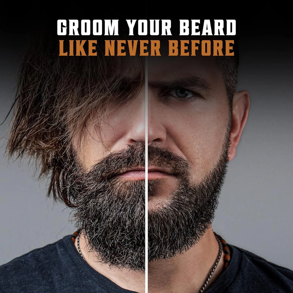 Viking Revolution Beard Comb & Beard Brush Set for Men - Natural Boar Bristle Brush and Dual Action Pear Wood Comb w/Velvet Travel Pouch - Great for Grooming Beards and Mustaches Look And Feel Your Best: With a high quality brush and double sided comb, get ready for a smooth, well-manicured beard free of tangles. Beard Grooming Kit: Brush or comb Beard Oil, Pomade, Beard Balm and Beard Conditioners through your beard evenly. Makes a Great Gift: The beard styling products make the perfect present for your favorite bearded man, and come in a velvet travel pouch. 100% All Natural: The beard brush and pocket comb are made from Bamboo & Pear Wood - sustainable wooden materials The Viking Promise: If for any reason, you’re not completely satisfied, simply contact us and we’ll take care of it.