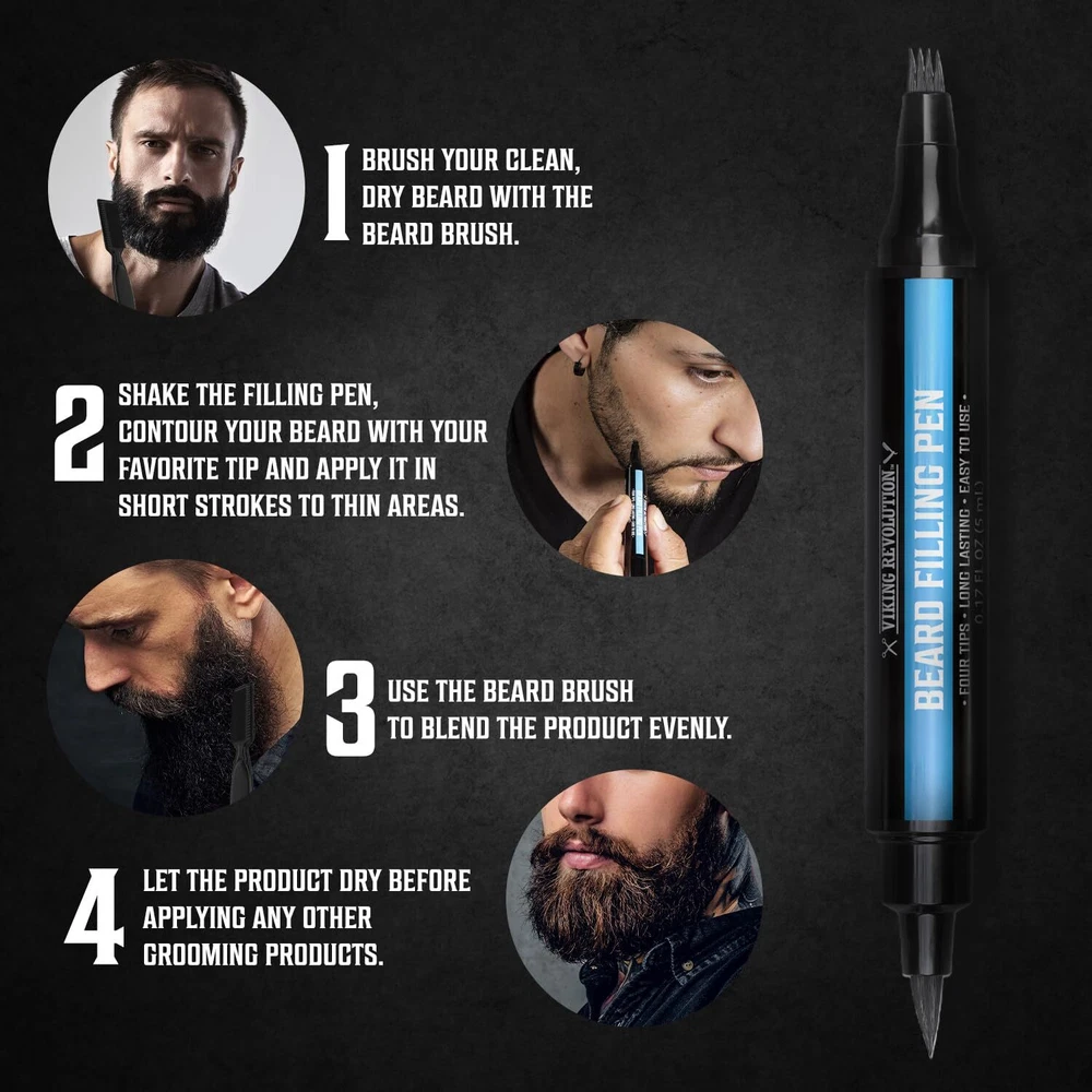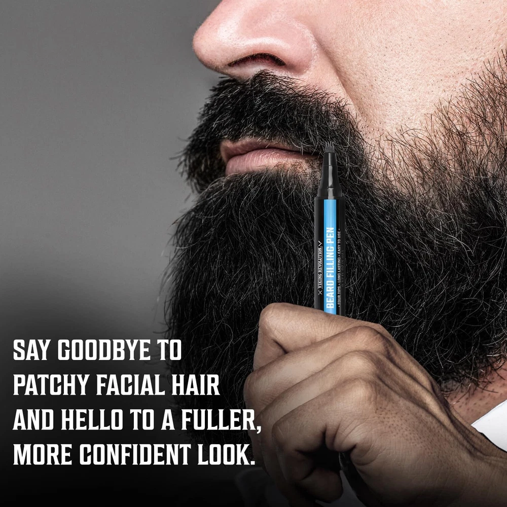 Viking Revolution Beard Pen (2 Pack) - Black Beard Pencil Filler for Men Lapiz para Barba de Hombre - Beard Filler for Men Waterproof Beard Filling Pen Kit - Long Lasting Beard Filler Pen with Brush No More Patchy Facial Hair - The beard pencil filler for men is here to help you achieve a fuller, more confident look. Say farewell to patchy spots and hello to a beard that exudes strength and style with a mens beard dye. Effortless Beard Coloring for Men - With its easy-to-use design the barber pencil is accessible to everyone, regardless of grooming experience. Simply and effortlessly fill in any patchy areas to create a uniform and robust beard. Long-Lasting and Water/Sweatproof - This beard color for men features a long-lasting formula that keeps your beard looking impeccable throughout the day. Whether you're facing a busy workday or a vigorous workout, rest assured that your beard will stay intact. The water and sweatproof properties ensure a flawless appearance even in challenging conditions. Extra Tips and Brush Included - For added convenience and value, each beard pen includes 4 extra replacement tips and a brush. No need to worry about running out of supplies. You can confidently perfect your beard grooming routine without any hassle. Elevate your Grooming Game - Transform your facial hair into a symbol of confidence and masculinity. Don't let patchiness hold you back—unlock your true potential with beard dye and make a lasting impression with a beard marker for men. Say goodbye to patchy facial hair and hello to a fuller, more confident look with the Viking Revolution Beard Filling Pen. This two-pack pen with a brush is the ultimate solution for achieving a well-groomed and impressive beard. Each pen is equipped with four tips to provide precision and accuracy, ensuring effortless application. With its long-lasting formula, the Viking Revolution Beard Filling Pen offers a reliable solution for maintaining a fuller beard throughout the day. Whether you're heading to the office or hitting the gym, this pen is waterproof and sweatproof, guaranteeing a flawless appearance even in challenging conditions. To enhance the convenience and value, each Viking Revolution Beard Filling Pen includes extra replacement tips and a brush, ensuring long-term use and effortless maintenance. You can confidently achieve the desired beard style without worrying about running out of supplies. Experience the transformation as you embrace a fuller, more confident look with the Viking Revolution Beard Filling Pen. This innovative grooming tool empowers you to overcome patchy facial hair and achieve the beard you've always desired. Finally, you can eliminate the frustrations of uneven growth, and hello to a beard that exudes strength and style. With the Viking Revolution Beard Filling Pen, you can take control of your appearance and make a lasting impression. Shipping We offer FREE shipping on all orders! We ship within Three business days of payment, usually sooner. We use a selection of shipping services such as UPS, FedEx, USPS etc. We only ship to the lower 48 states, no APO/FPO addresses or PO Boxes allowed. Local pickups and combined shipping options are not provided at this time. Return You can return a product for up to 30 days from the date you purchased it. Any product you return must be in the same condition you received it and in the original packaging. Please keep the receipt. Payment We accept payment by any of the following methods: PayPal Please pay as soon as possible after winning an auction, as that will allow us to post your item to you sooner! Feedback Customer satisfaction is very important to us. If you have any problem with your order, please contact us and we will do our best to make you satisfied. Contact Us If you have any queries, please contact us via ebay. We usually respond within 24 hours on weekdays. Please visit our eBay store to check out other items for sale! Thank you for shopping at our store.
