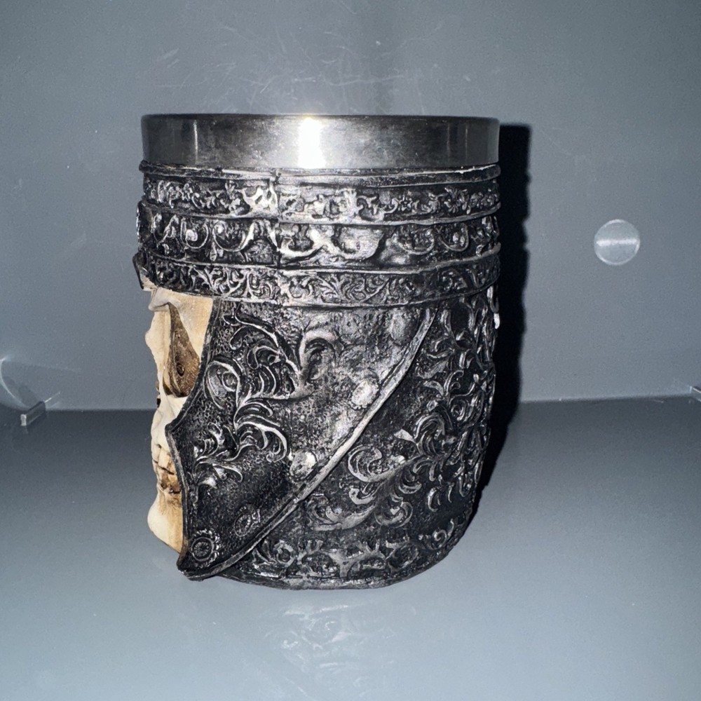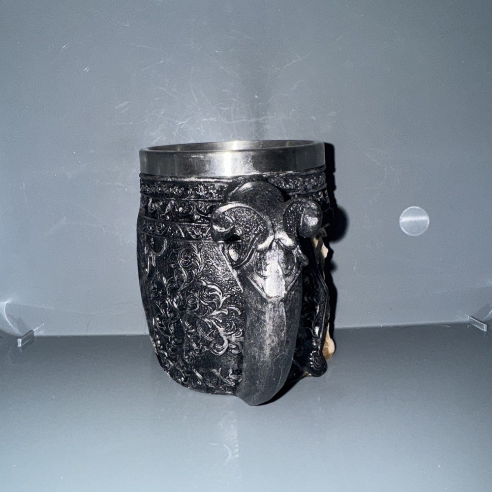 The Viking Skull Mug is a stylish beer mug made of stainless steel with a silver color and a theme of skeletons and skulls. This unique mug features a design that adds a touch of edgy style to your drinking experience. Perfect for those who enjoy a bit of Viking-inspired decor in their home or kitchen, this mug is both functional and visually appealing. Add a touch of adventure to your morning cup of coffee or beer with this striking Viking Skull Mug.