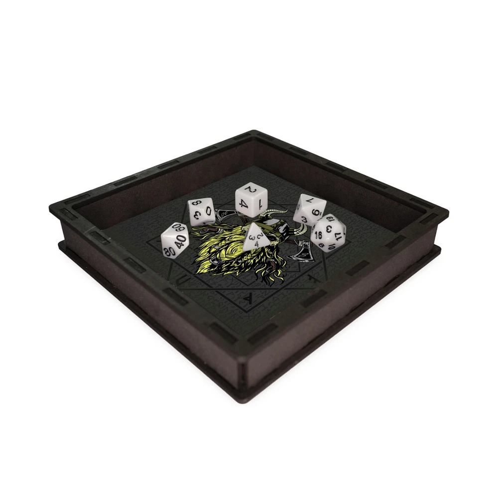 Viking Helmet Warrior Dice Tray This Dice Tray is the perfect gift for fans of Tabletop Gaming, Board Games, Wargames and DnD. If it’s a square wooden dice tray, octagon dice tray or neoprene folding dice tray you want, we’ve got a huge range of designs in our store. Made and hand finished from laser cut black MDF with printed neoprene inlay for a statement tray with an even rolling surface. Prevents lost dice, crawling around on the floor for that elusive D20, chasing the dog for a die they've picked up, arguing over a strategically placed corner die wedged in the carpet etc... 🎲Dice Tray Information🎲 ◾External Size - 17cm x 17cm x 3cm ◾Internal Size - 15cm x 15cm x 2.5cm ◾Inlay on printed neoprene ◾This wooden framed dice tray is made from dyed black MDF. ◾Dice NOT included 🏠Our Processes🏠 ◾Our dice trays use rubber backed neoprene for their bases/liners ◾Printed by us in house using vegan friendly sublimation inks ◾We cut and make our own frames on our laser Every dice tray gets a test roll prior to packing to make sure you get the best rolling tray surface possible for your dice! 📫SHIPPING📫 We offer safe and secure worldwide shipping, and can combine shipping at only 50p per additional item (highest base rate applies). If you like what you see please check out our other listings.