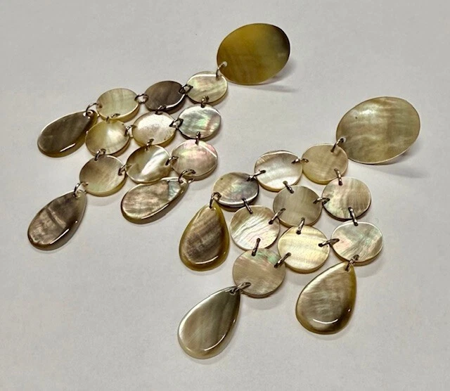 Main Stone Color: Taupe MPN: Does Not Apply Style: Chandelier Inseam: Not Available Material: Shell, Mother of Pearl Shape: Round and Teardrop Ear Area: Lobe Closure: Post or Stud gtin13: Does not apply Item Length: 4" Setting Style: Chandelier Metal Purity: Not Applicable Main Stone Shape: Round and Teardrop Vintage: No Main Stone: Mother of Pearl UPC: Does not apply Type: Earrings Brand: Viktoria Hayman Antique: No Color: Taupe
