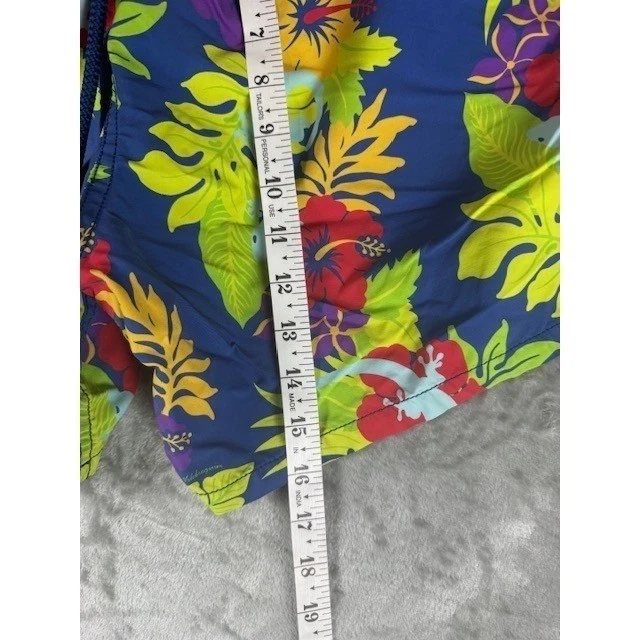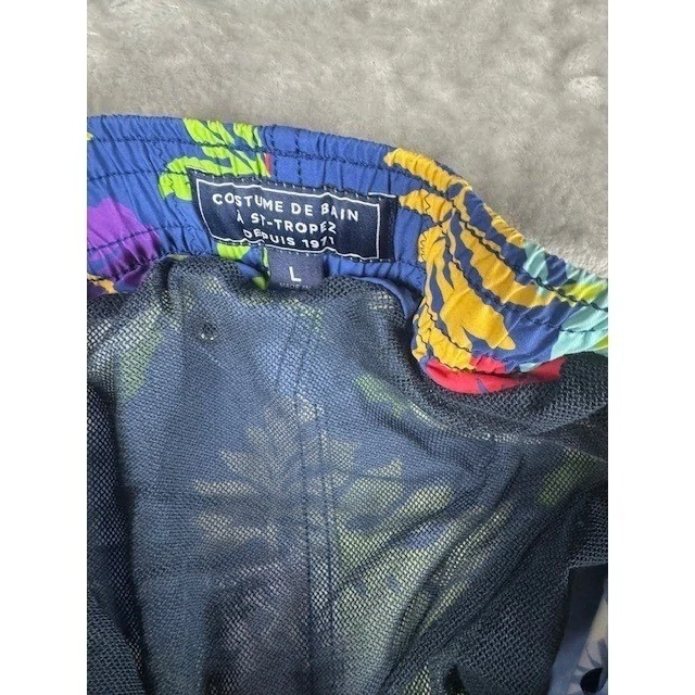 Features: Drawstring, Pockets, Elastic Waist, Above-the-Knee Color: Blue Size: L Personalize: No Vintage: No Country of Origin: France Pattern: Floral Material: Nylon, Polyester Type: Bottom Swim Bottom Style: Board Shorts Lining Material: Mesh Brand: Vilebrequin Performance/Activity: Surfing Theme: Jungle Department: Men Size Type: Regular Garment Care: Machine Washable
