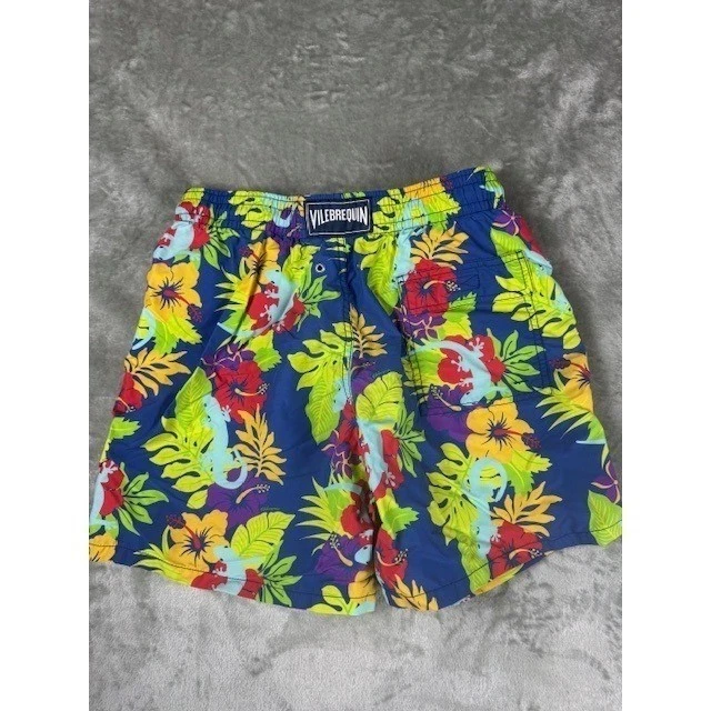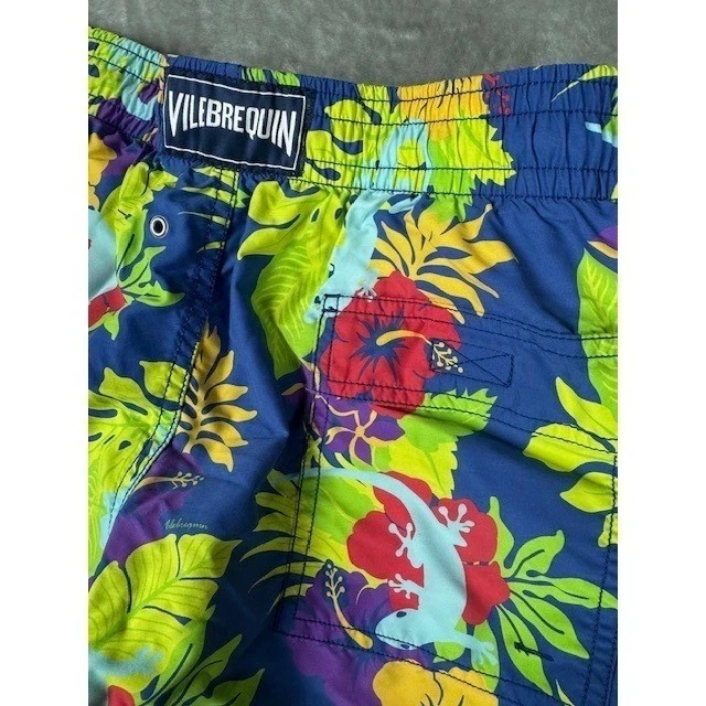 Vilebrequin Men's Swim Trunks Tropical Lizard Floral Print Blue L