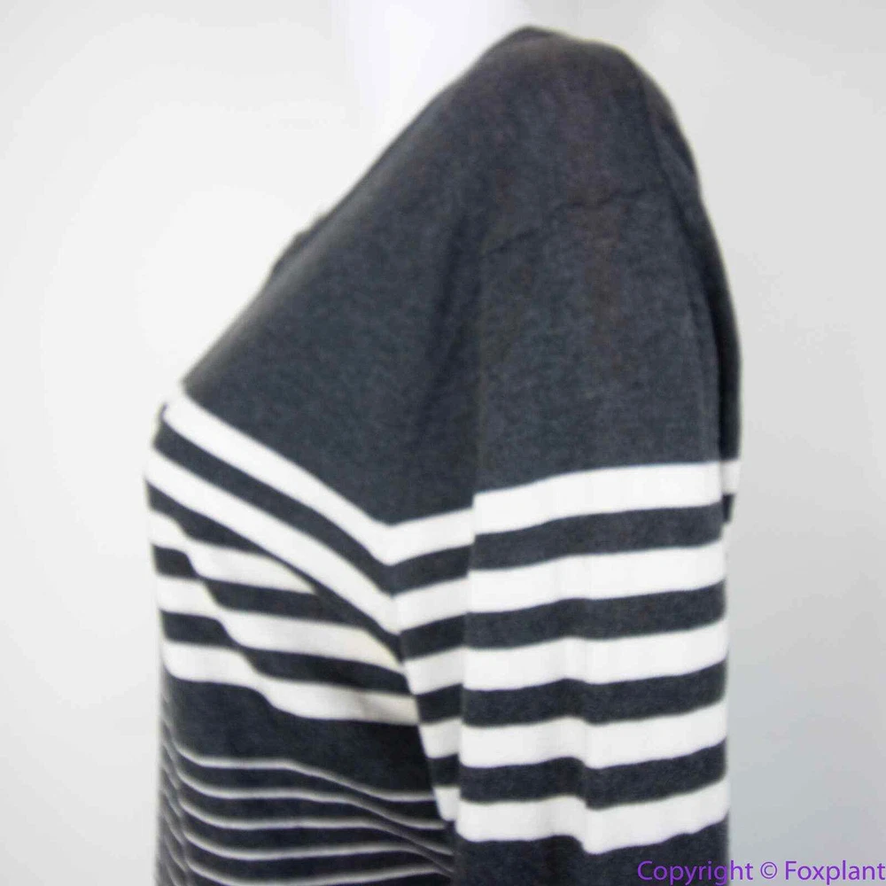 Vince 100% cotton grey stripe crewneck sweater, L crewneck stripes long sleeve ribbed cuff Color: gray, white Size L, please check laid flat measurements. Shoulder(seam to seam): 17 3/4 '' Bust(armpit to armpit): 20 1/2'' Length (from high point of shoulder down): 26 1/2'' Sleeve(shoulder seam to hem): 25 1/2'' Measurements are approximate and provided as a courtesy, not a guarantee of fit. Excellent condition. No noticeable flaws or stains or damages.