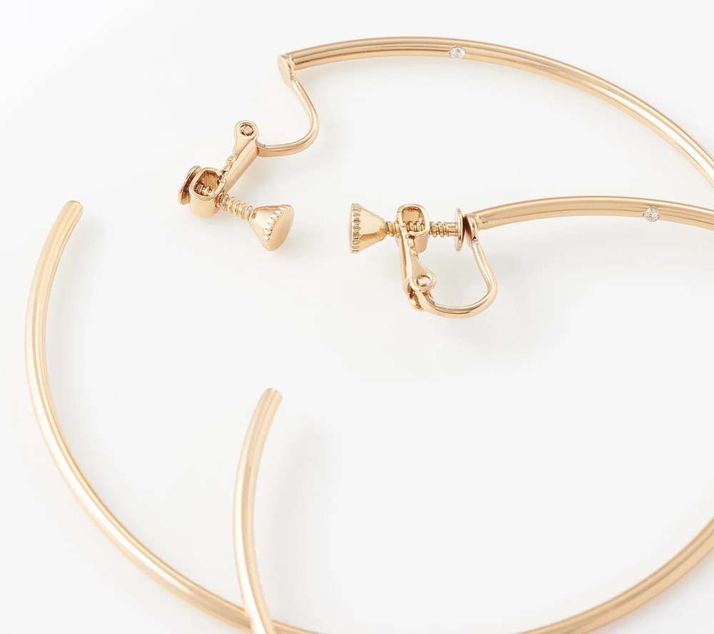 A classic pair of hoop earrings should be in every fashionista's jewelry box. These ample hoops have an adjustable screwback clip-on closure for maximum comfort. From Vince Camuto. Gold Tone Polished hoop design Clip-on closures with adjustable screw backs, for non-pierced ears Measures approximately 3"L x 1/16"W Imported