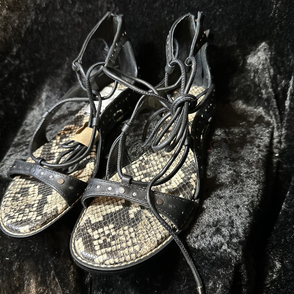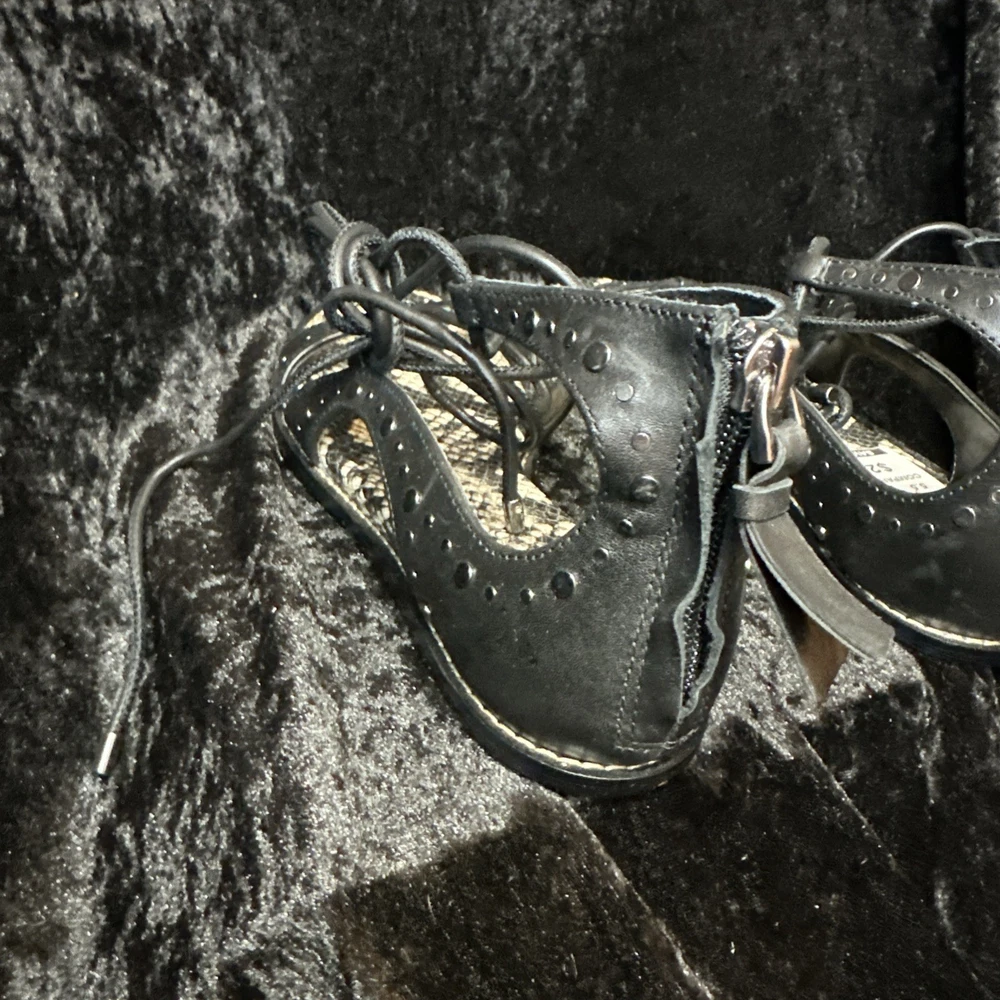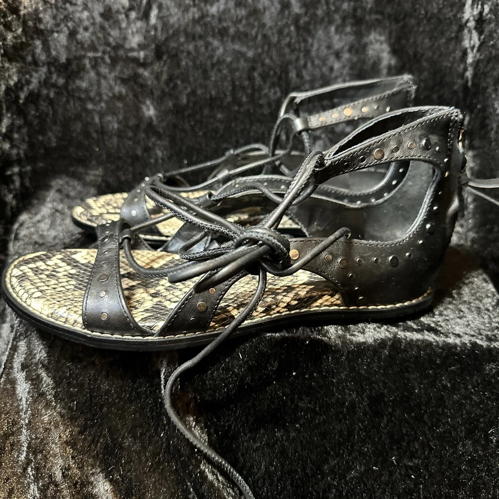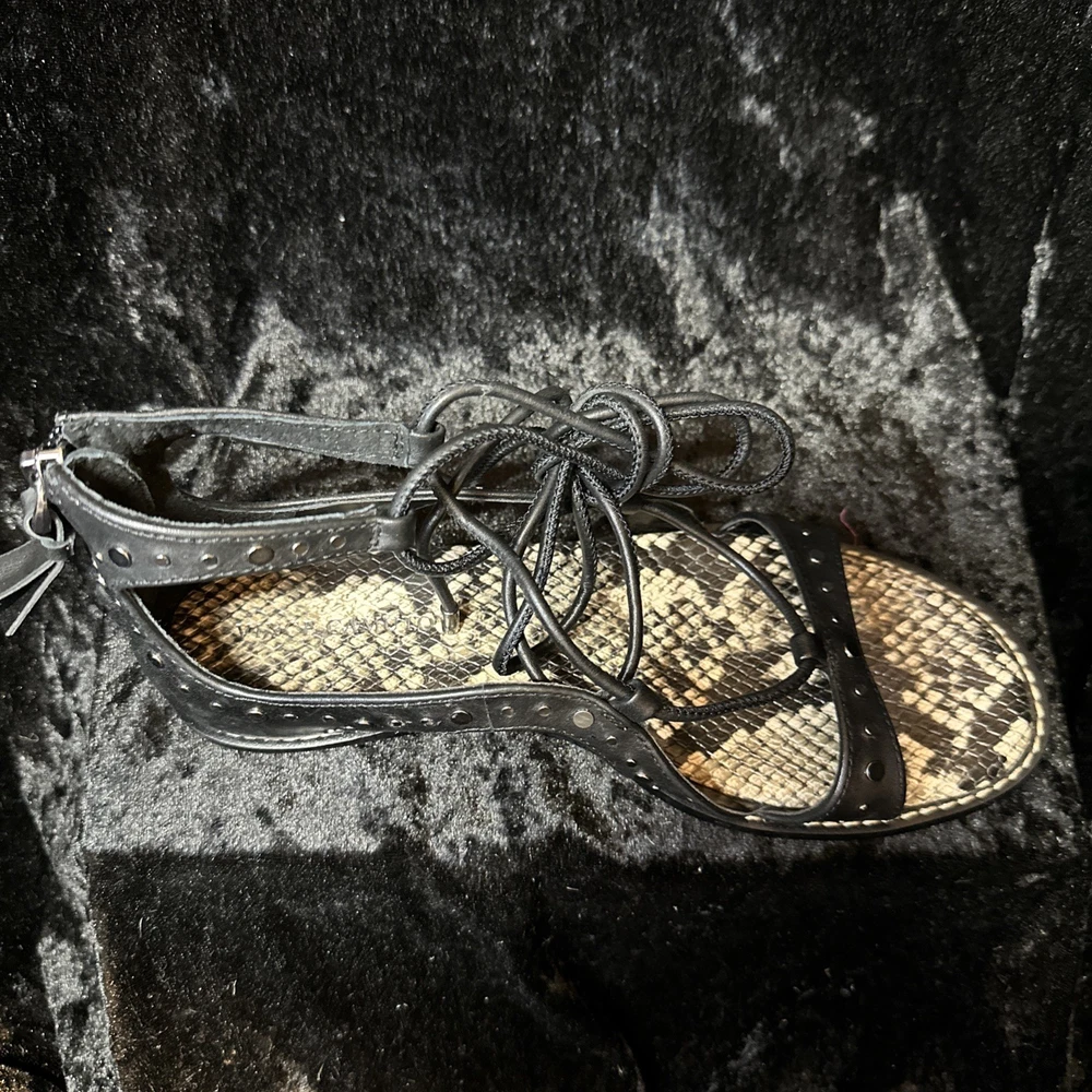 Elevate your shoe game with these black flats from Vince Camuto. The open toe design and tie closure provide a sleek and comfortable fit, perfect for any occasion. The leather lining and rubber outsole ensure durability and long-lasting wear. Studded accents and a zipper add a touch of edginess to these classic flats, making them perfect for both casual and formal events. These lightweight and comfortable flats are perfect for any season, with a solid pattern that matches any outfit. The medium width and leather upper material make these shoes a must-have for any stylish woman's wardrobe. Don't miss out on the opportunity to add these versatile Vince Camuto flats to your shoe collection.