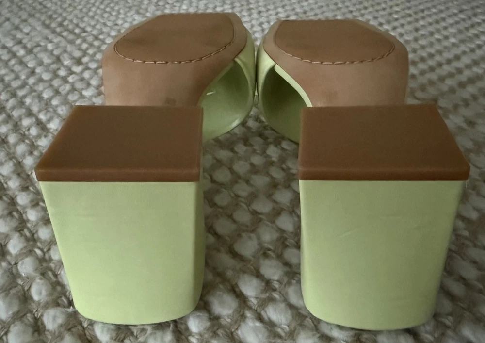 Sole material - Synthetic Rubber Outer material - Leather Closure type - Buckle Color: Celery Green Upper: Leather Design: Slip-on dress sandal Toe Type: Open, square Back: Open Lining: Manmade Insole: Padded Sole: Manmade Sandal: Block Heel Fit: True to size Back Heel Height: Approx. 3"H self-covered heel Description The wear everywhere sandal. This proven construction with sturdy block heel will carry you wherever you need to go throughout the day. Dependent on the upper, the heel is either covered in a matching leather or stacked. With two barely puffed straps, one straight across the toes and one reaching diagonally back up and over your arch, you can travel securely and confidentally wherever the journey takes you.