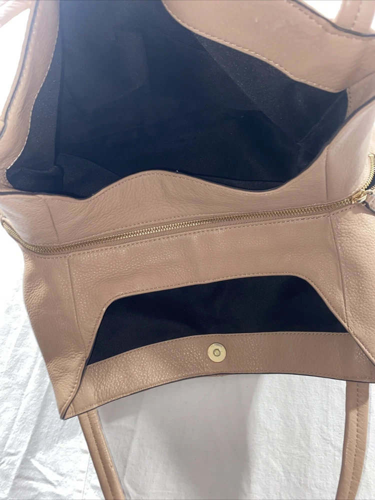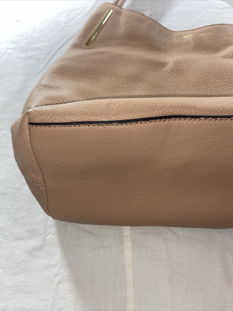 Vince Camuto Brown Leather Large 3 Divided Sections Shoulder Bag 16x12x5". Condition is Pre-owned. Shipped with USPS Ground Advantage.