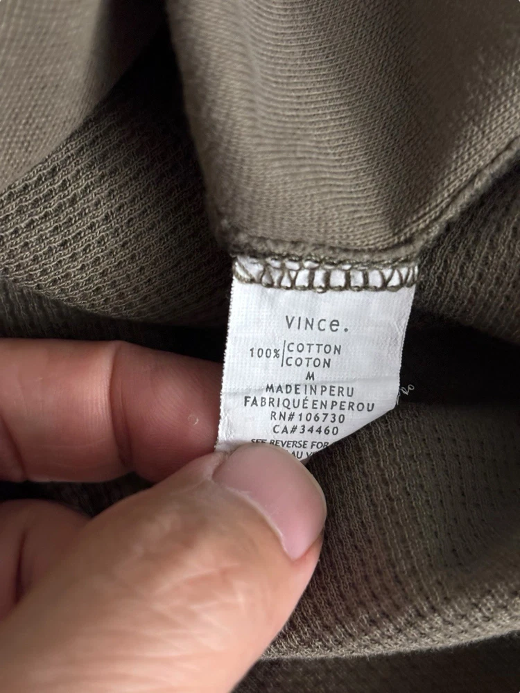 Fit: Regular Vintage: No Garment Care: Machine Washable Brand: Vince Type: T-Shirt Material: Cotton Fabric Type: Knit Neckline: Henley Features: All Seasons, Thermal Personalize: No Seller Notes: “Has few stains (pointed out). Good pre-owned condition. ***See Pictures for Measurements***” Color: Green Department: Men Season: Fall, Spring, Summer, Winter Country of Origin: Peru Sleeve Length: Long Sleeve Handmade: No Size: M Size Type: Regular Theme: Designer, Preppy Pattern: Solid