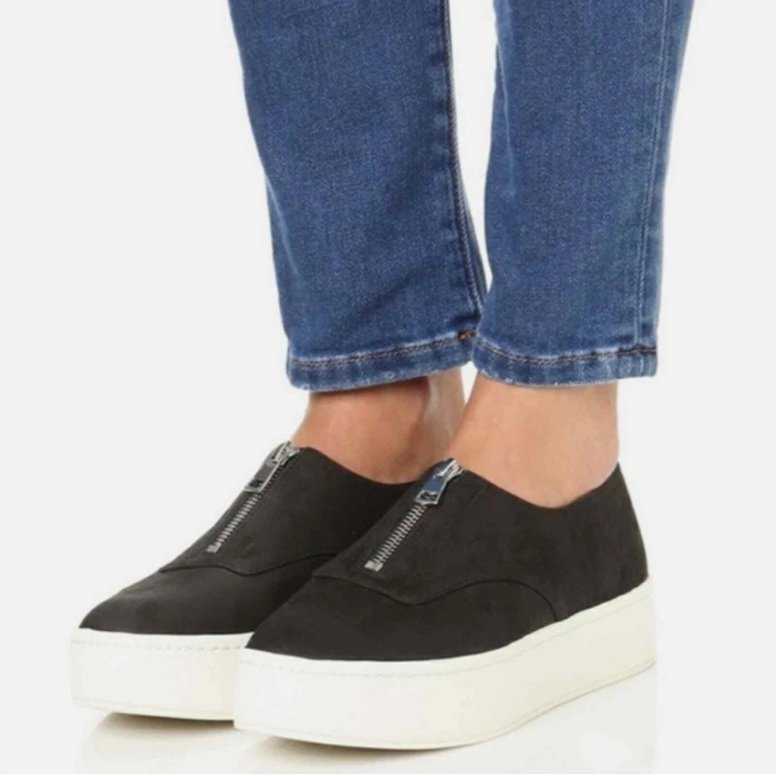 Vince Warner Women 7.5 M 37.5 Suede Flatform Platform Sneakers Casual Comfort Measurements from Footbed: Length(toe/heel)-19.63" Width at ball-3.25" Platform Height-1.5" Measure inside your favorite flat shoes for size comparison. Front zip revamps platform sneaker in supple suede. Suede upper Round toe Front zip Leather lining and sole Padded insole Rubber flatform platform sole Condition: Very Gently Used Uppers have creasing Soles are discolored/yellowed. See pictures Clean inside and out Be sure to check out the store for other great items and bargains. And remember we combine shipping on multiple purchases. Vince Warner Women 7.5 M 37.5 Suede Flatform Platform Sneakers Casual Comfort Measurements from Footbed: Length(toe/heel)-19.63" Width at ball-3.25" Platform Height-1.5" Measure inside your favorite flat shoes for size comparison. Front zip revamps platform sneaker in supple suede. Suede upper Round toe Front zip Leather lining and sole Padded insole Rubber flatform platform sole Condition: Very Gently Used Uppers have creasing Soles are discolored/yellowed. See pictures Clean inside and out Be sure to check out the store for other great items and bargains. And remember we combine shipping on multiple purchases.