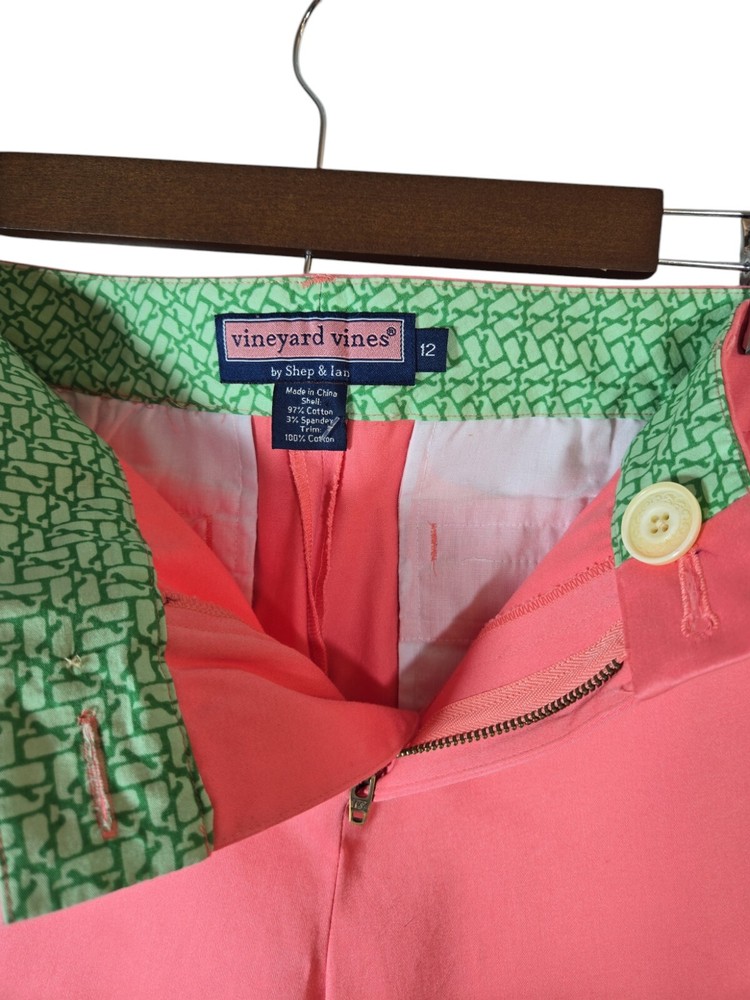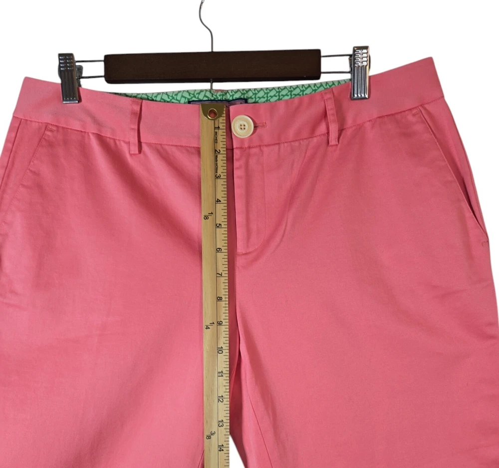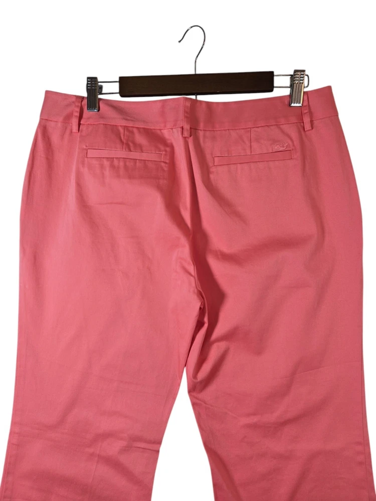 Size Type: Regular Material: Cotton, Spandex Pattern: Solid Leg Style: Straight Closure: Button, Zip Waist Size: 35 in Features: Comfort, Pockets Color: Pink Fit: Regular Accents: Button, Logo Size: 12 Brand: Vineyard Vines Type: Pants Vintage: No Occasion: Business, Casual, Travel, Workwear Fabric Type: Canvas Theme: Nautical, Preppy Style: Chino Department: Women Inseam: 32 in
