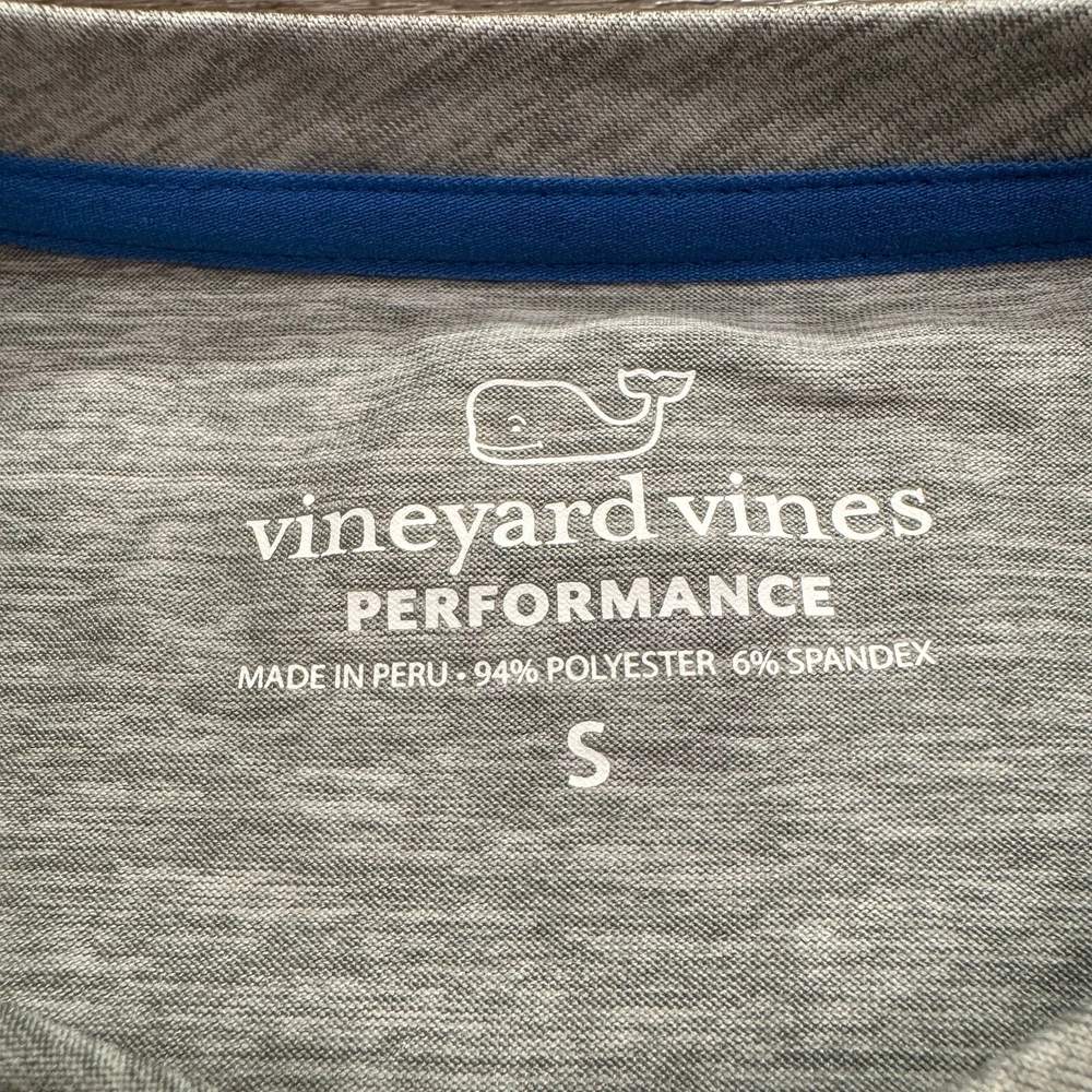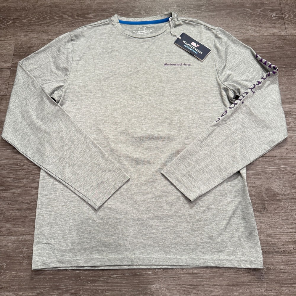 Pattern: Solid Sleeve Length: Long Sleeve Theme: Shark Occasion: Activewear Fit: Regular Color: Gray Size: S Style: Basic Department: Men Closure: Pullover Features: Breathable, Easy Care, Moisture Wicking Size Type: Regular Neckline: Crew Neck Material: Polyester Blend, Spandex Brand: Vineyard Vines Performance/Activity: Athleisure, Baseball Type: T-Shirt