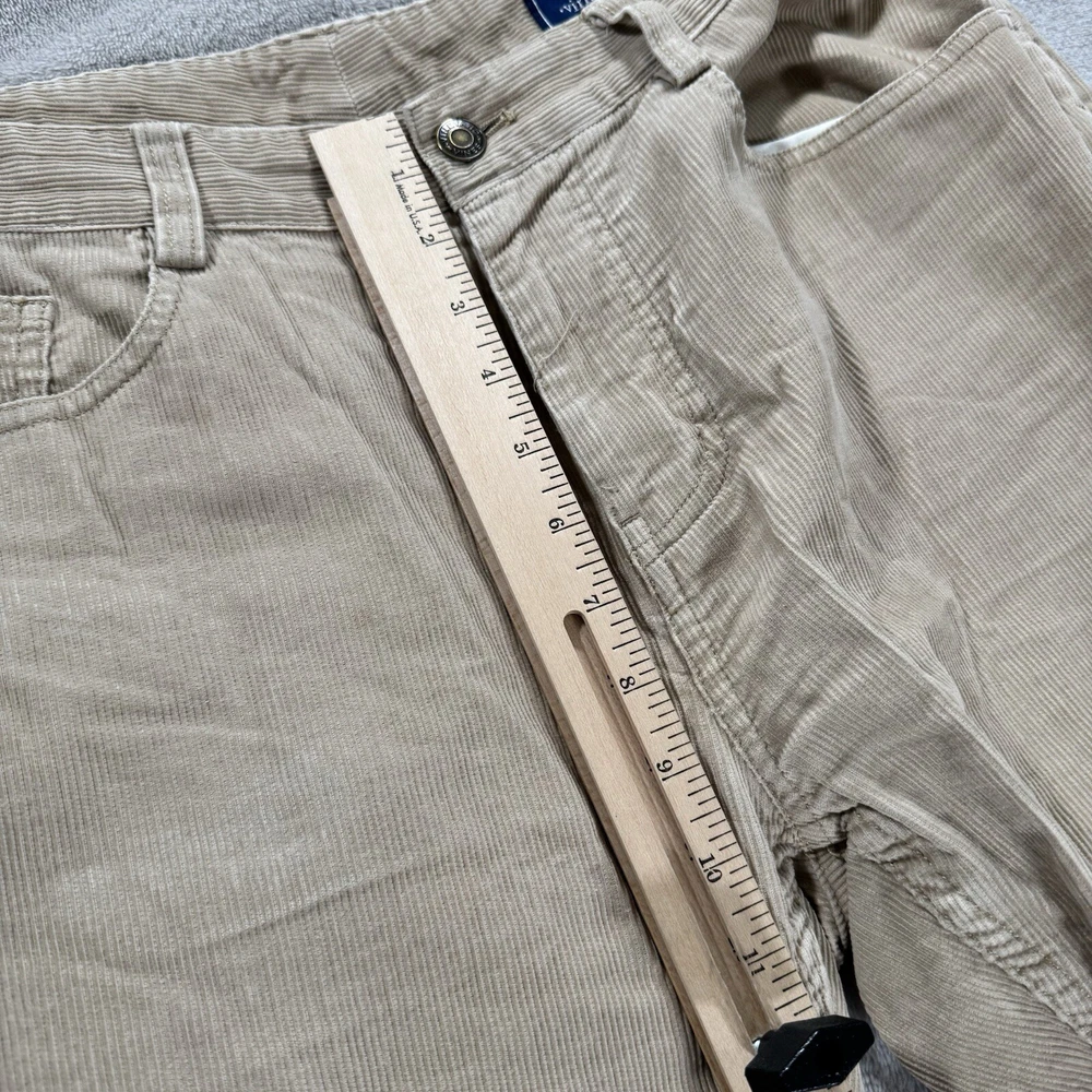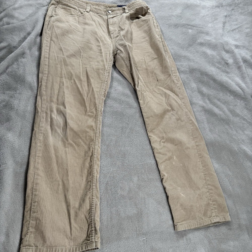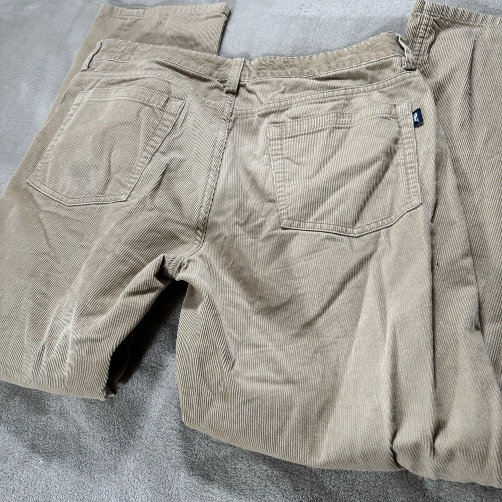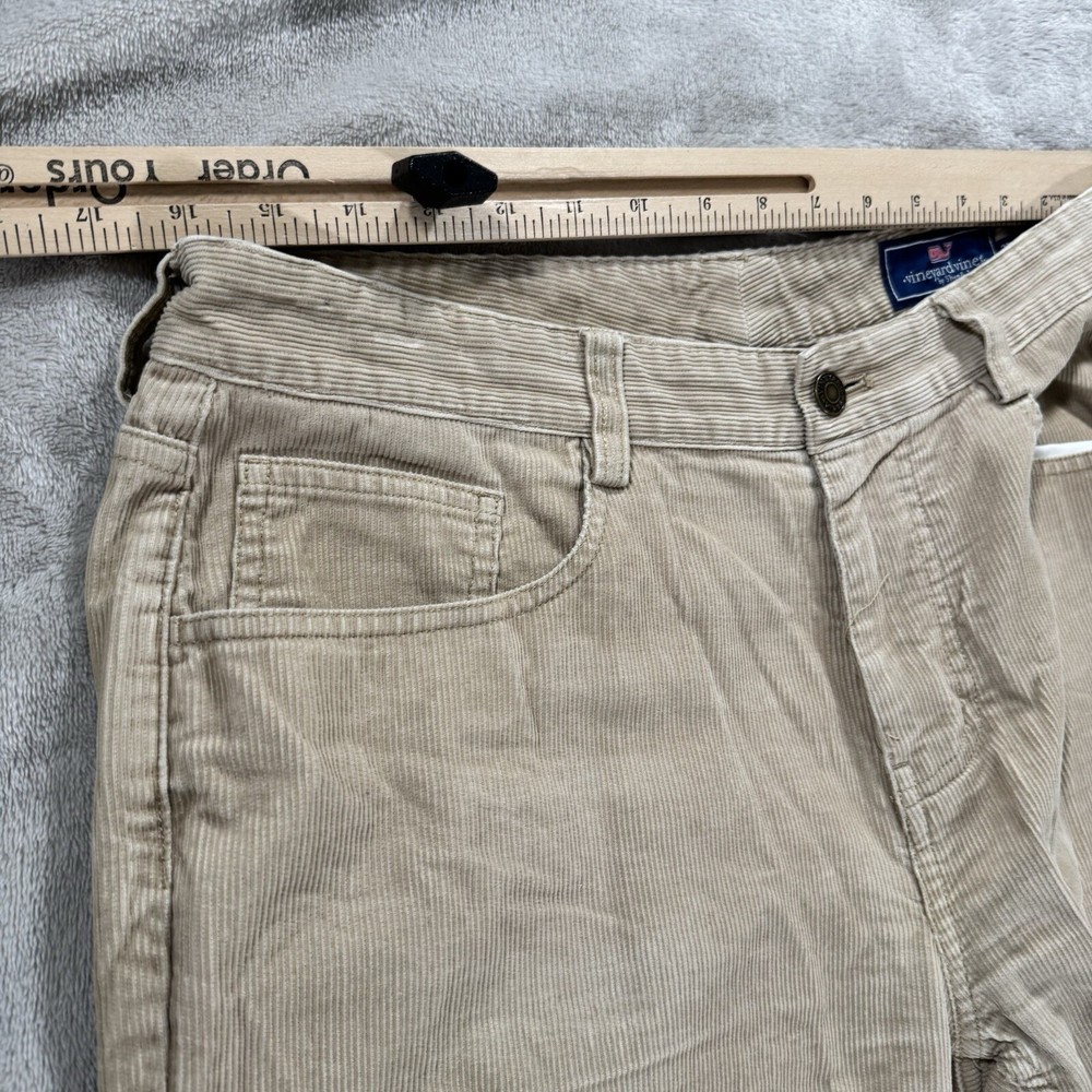 Elevate your wardrobe with these stylish Vineyard Vines corduroy pants. Perfect for any occasion, whether it be travel, casual, workwear, or business, these pants feature a solid pattern, zip closure, and flat front. The mid-rise and straight leg style make for a comfortable and flattering fit, while the 5-pocket design adds functionality to this preppy piece. Crafted from high-quality cotton and featuring stretch fabric, these pants will keep you comfortable all day long. The beige color is versatile and easy to pair with any top, making them a must-have for any stylish man's wardrobe. Don't miss out on this opportunity to add a touch of preppy style to your collection.