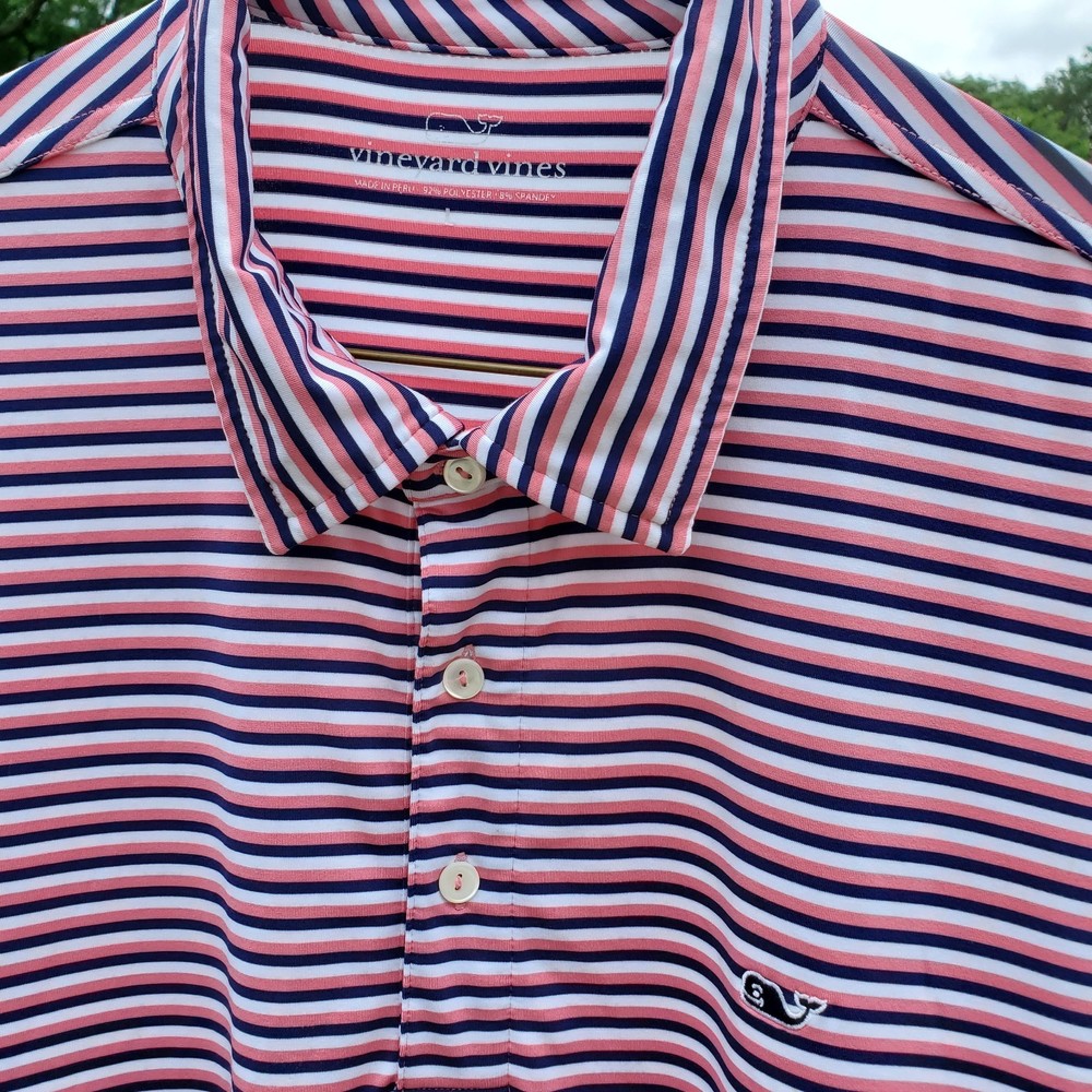 The Vineyard Vines Stretch Performance Polo Shirt is a stylish and versatile option for men looking for a casual yet put-together look. This striped polo features a collared neckline, button closure, and short sleeves, making it perfect for everyday wear or even a day out on the golf course. The knit fabric and polyester material provide stretch and comfort, while the spread collar adds a modern touch. Whether worn in the summer, fall, or spring, this Vineyard Vines polo is sure to become a staple in any man's wardrobe.