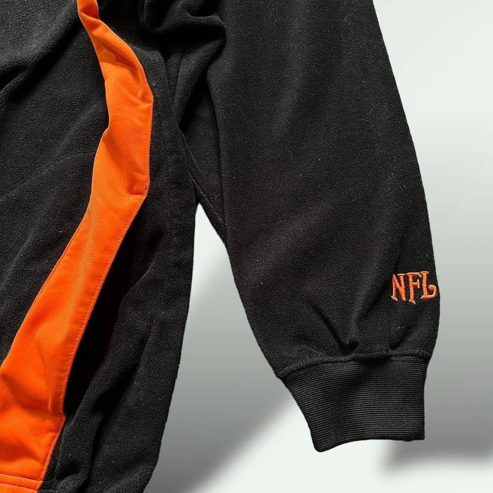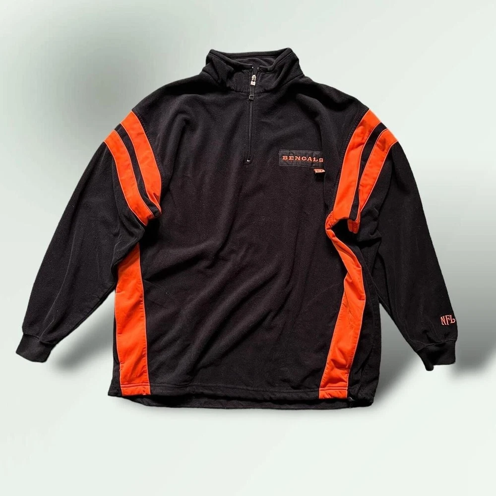 Vintage Y2K Cincinatti Bengals NFL 1/4 zip fleece jacket | boxy relaxed fit | black x orange π‘ excellent condition- no faults π‘ embroidered logos- Bengals patch on chest, NFL logo on sleeve, B symbol on the back of the collar π‘ drawstring adjustable waist, two pockets π‘ 100% polyester fleece fabric π size XL - could also fit baggy L - p2p 26" l30"