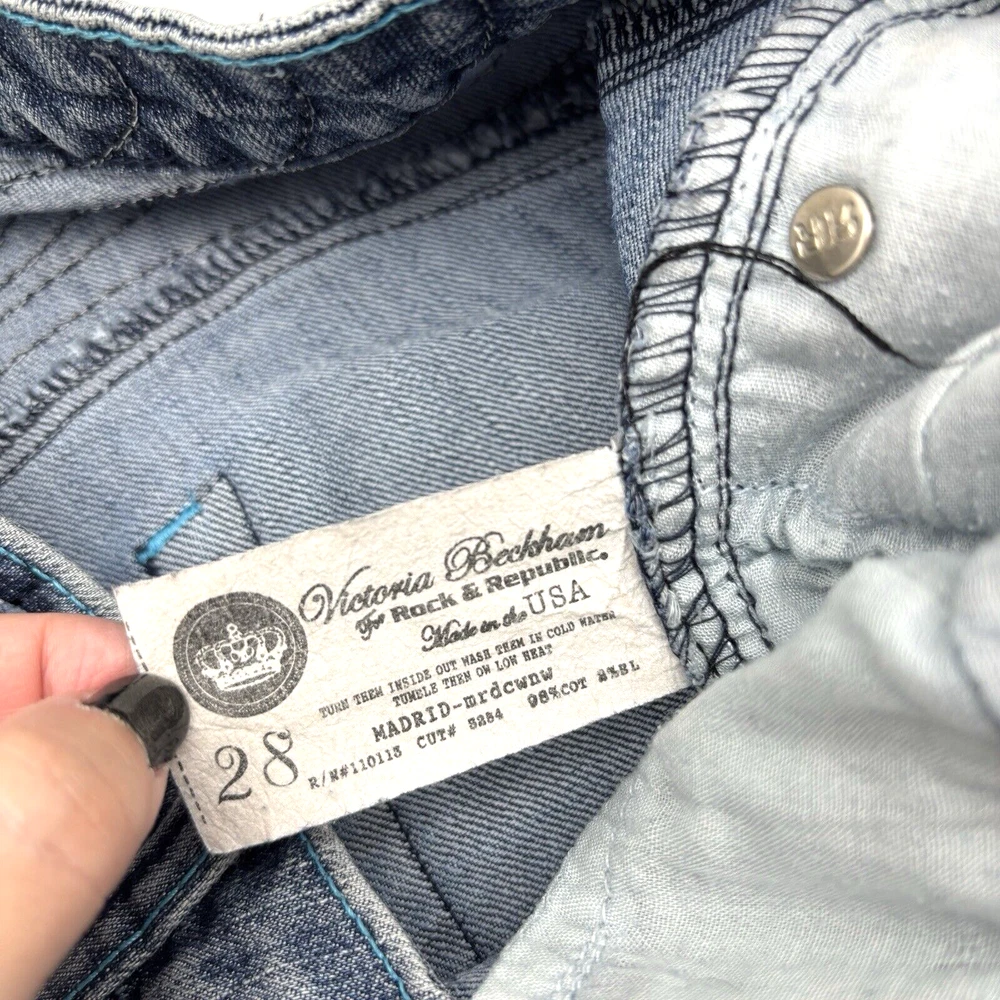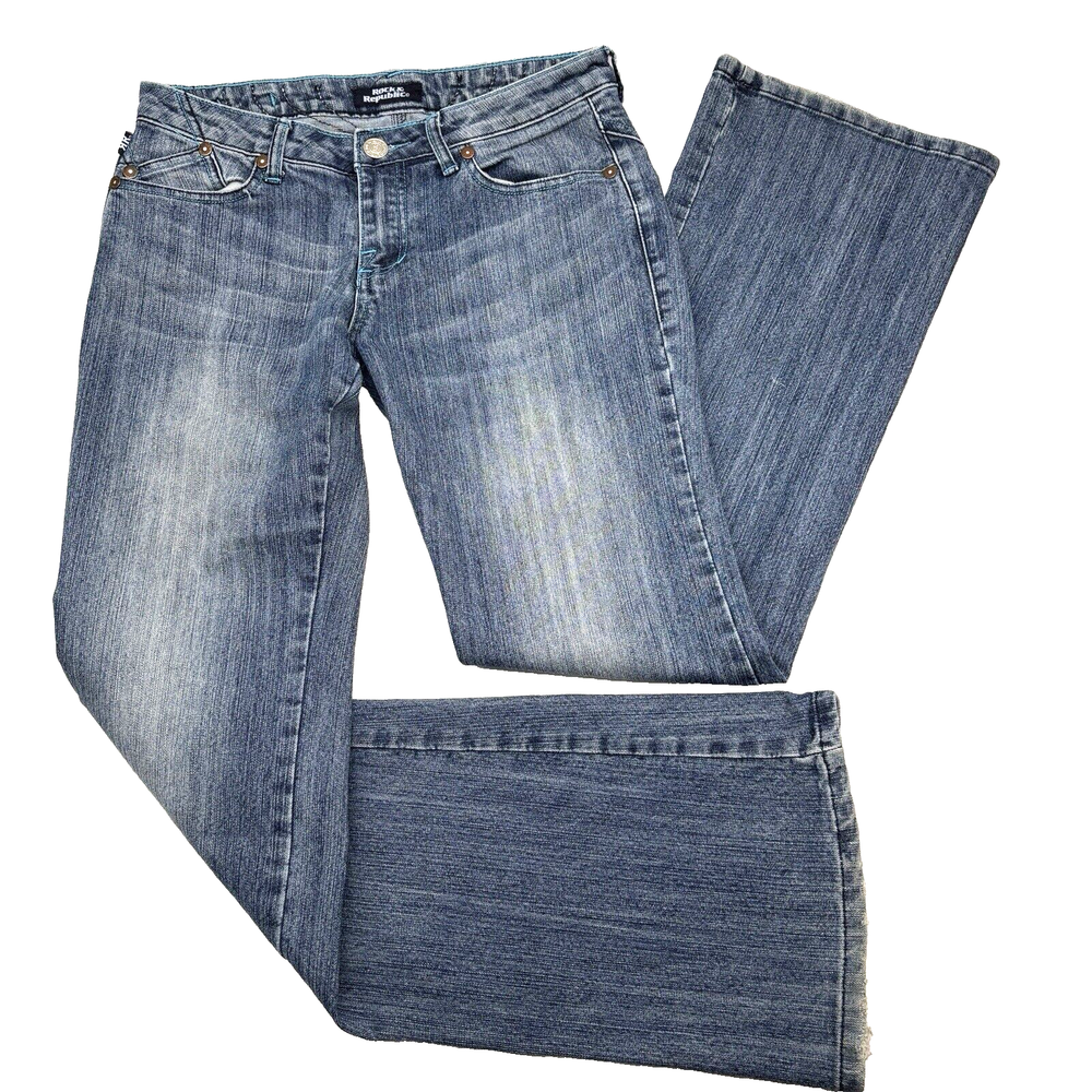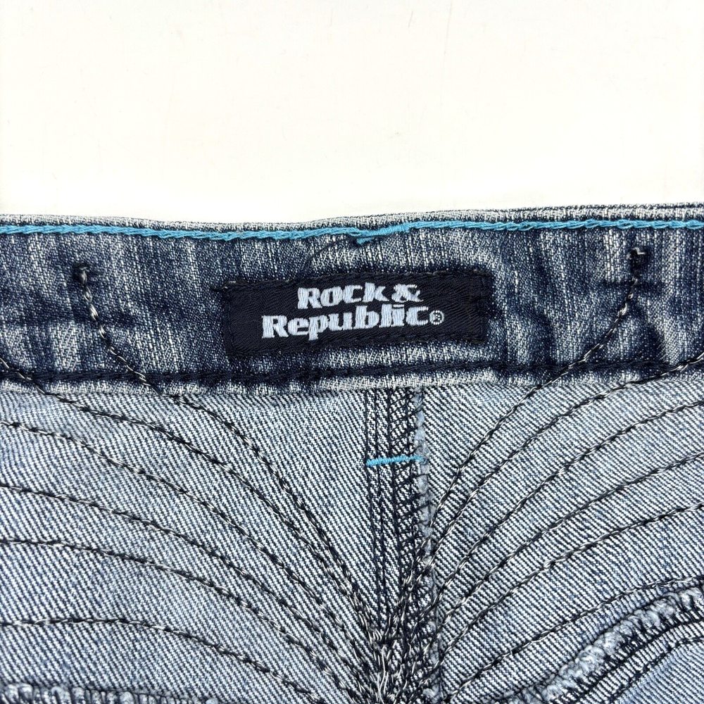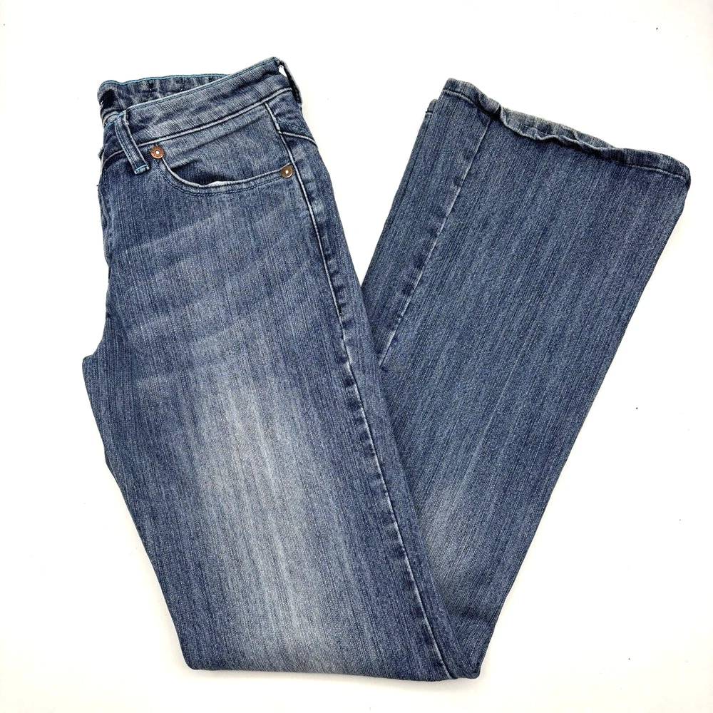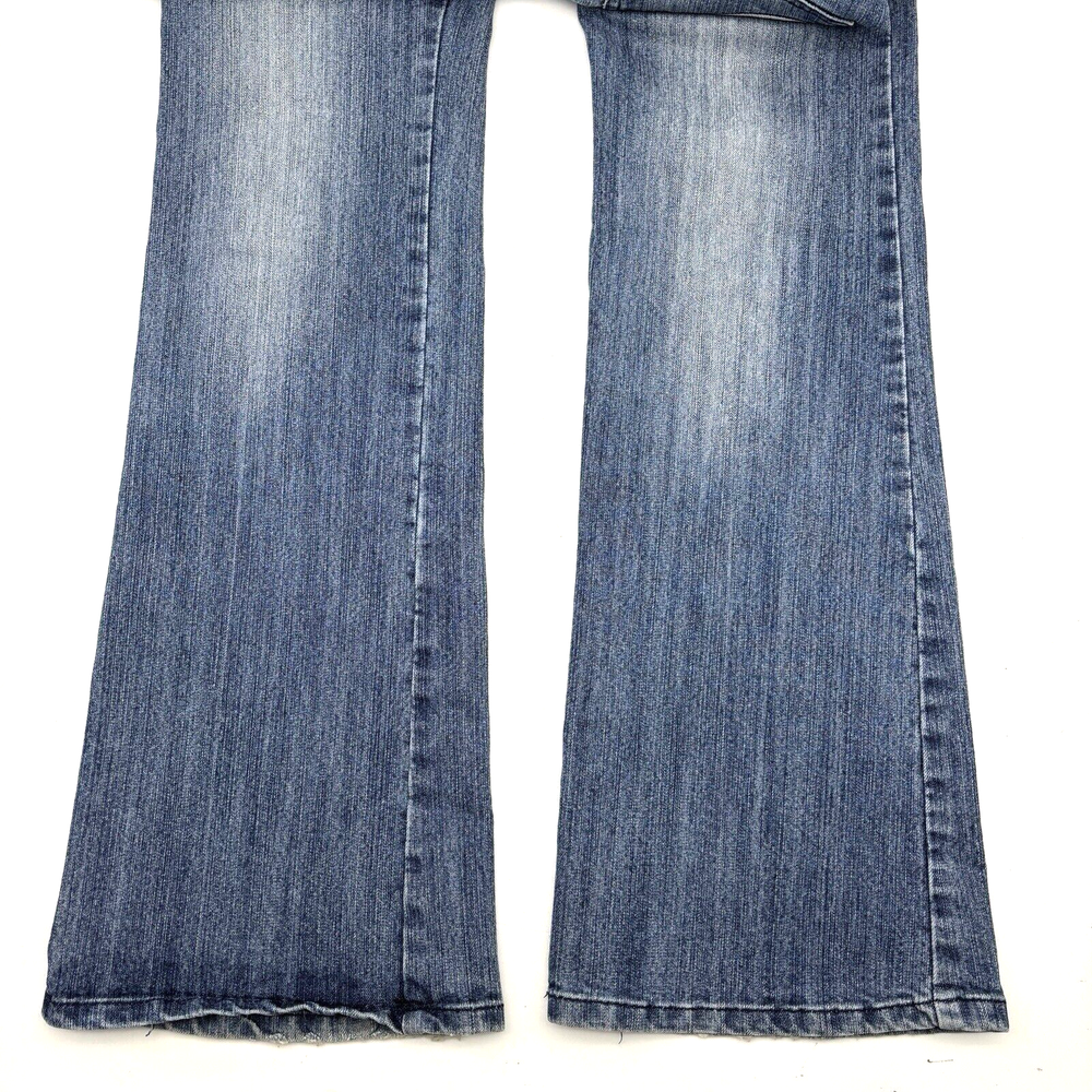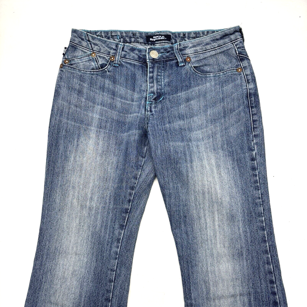 Vintage 00s Y2K Rock & Republic Jeans 98% Cotton, 2% Elastane Made in USA Model: MADRID Medium Wash Denim Flare Leg Low Rise Contrast Stitching Along Back Waist Zip and Button Closure 5-Pocket Design Belt Loops Women's Size 28 Refer to measurements below to ensure accurate fit before purchase! 8" rise 14.5" waist (29" circumference, 1" bigger than tag size) 19" hips 33" inseam 11" thighs 9.5" ankles 40" full length from waist to hems Measurements made with garment laying flat. Great vintage pre owned condition. Gently owned. Worn in and comfy! No rips, tears, stains, holes or other notable flaws. Clean and from a smoke free home.