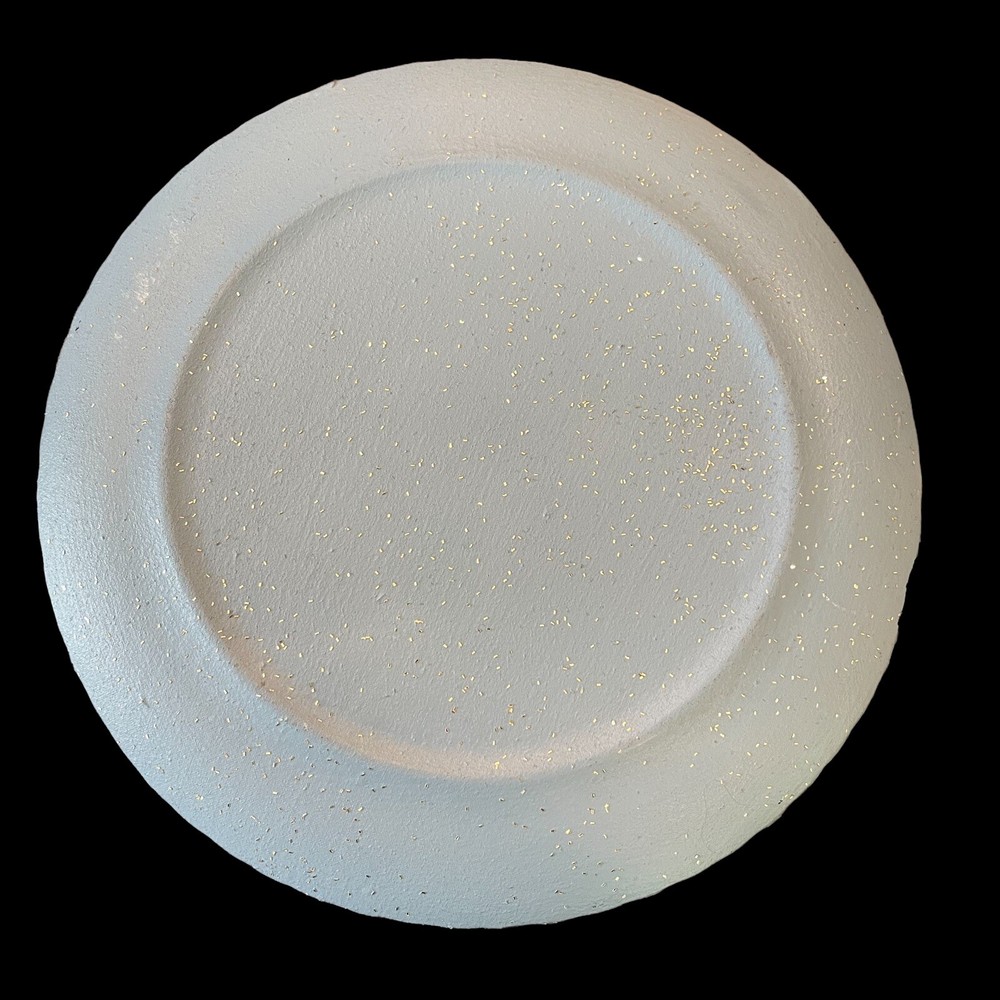 Vintage Clear Cased Glass Serving Plate Pilgrim Turkey Thanksgiving Pattern 10" 10" diameter. Clear glass with turkey pattern applied at back with a blue glitter backing. Scalloped rim.