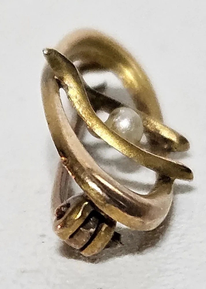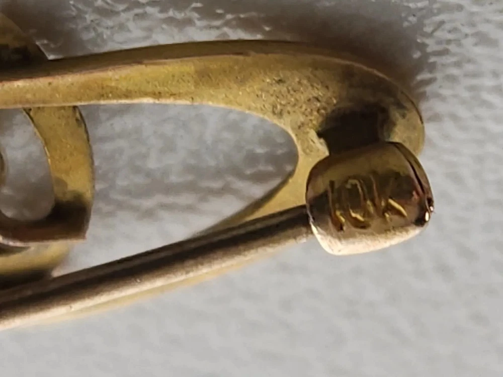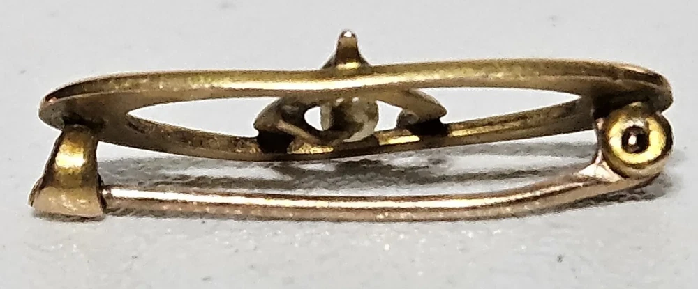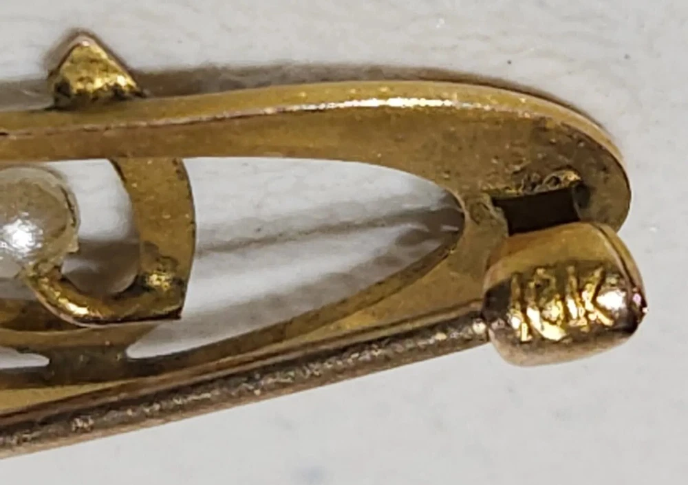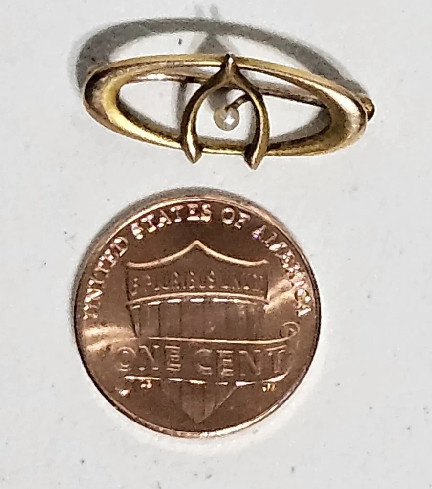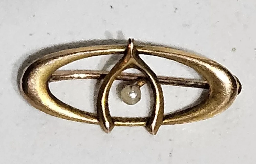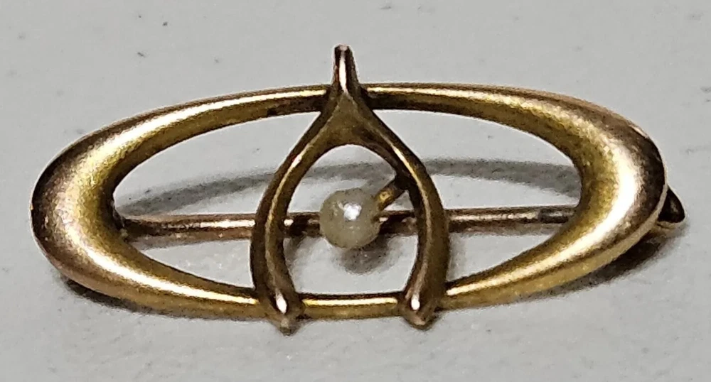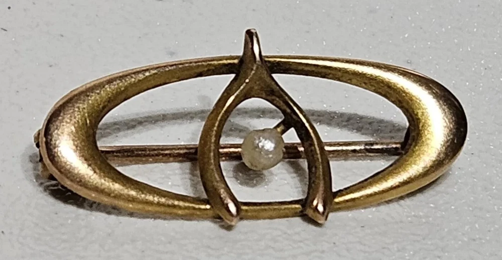Up for sale is a Vintage 10k Yellow Gold Wishbone Seed Pearl Brooch. Measures 7/8" Wide X 3/8" High. Total weight is 1.1 Grams. Brooch is in good condition with light wear. Please feel free to ask questions. Thank you. From a smoke and pet free home E-113