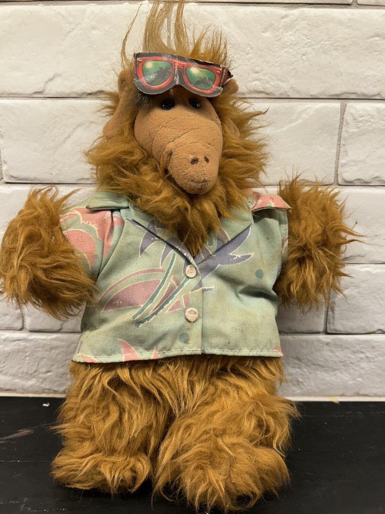 The product is a vintage 1980s Coleco hand puppet of the character Alf from the TV show "ALF." This plush puppet is 11 inches tall and features Alf wearing a Hawaiian shirt. The puppet is recommended for ages 6 and up, suitable for both boys and girls. It is a collector's item from the franchise "Alien" and is part of the ALF character family.