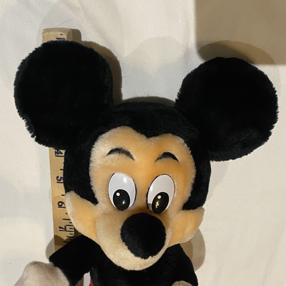 The product is a 12-inch vintage Disneyland Walt Disney World Mickey Mouse plush stuffed animal. Made by Disney, this collectible item features the iconic character Mickey Mouse from the Disney franchise. Produced in Sri Lanka, this classic plush toy is a must-have for any Disney enthusiast looking to add a piece of nostalgia to their collection. Perfect for fans of Mickey Mouse and Disneyana, this stuffed animal is a timeless treasure that brings joy and memories of the beloved character.