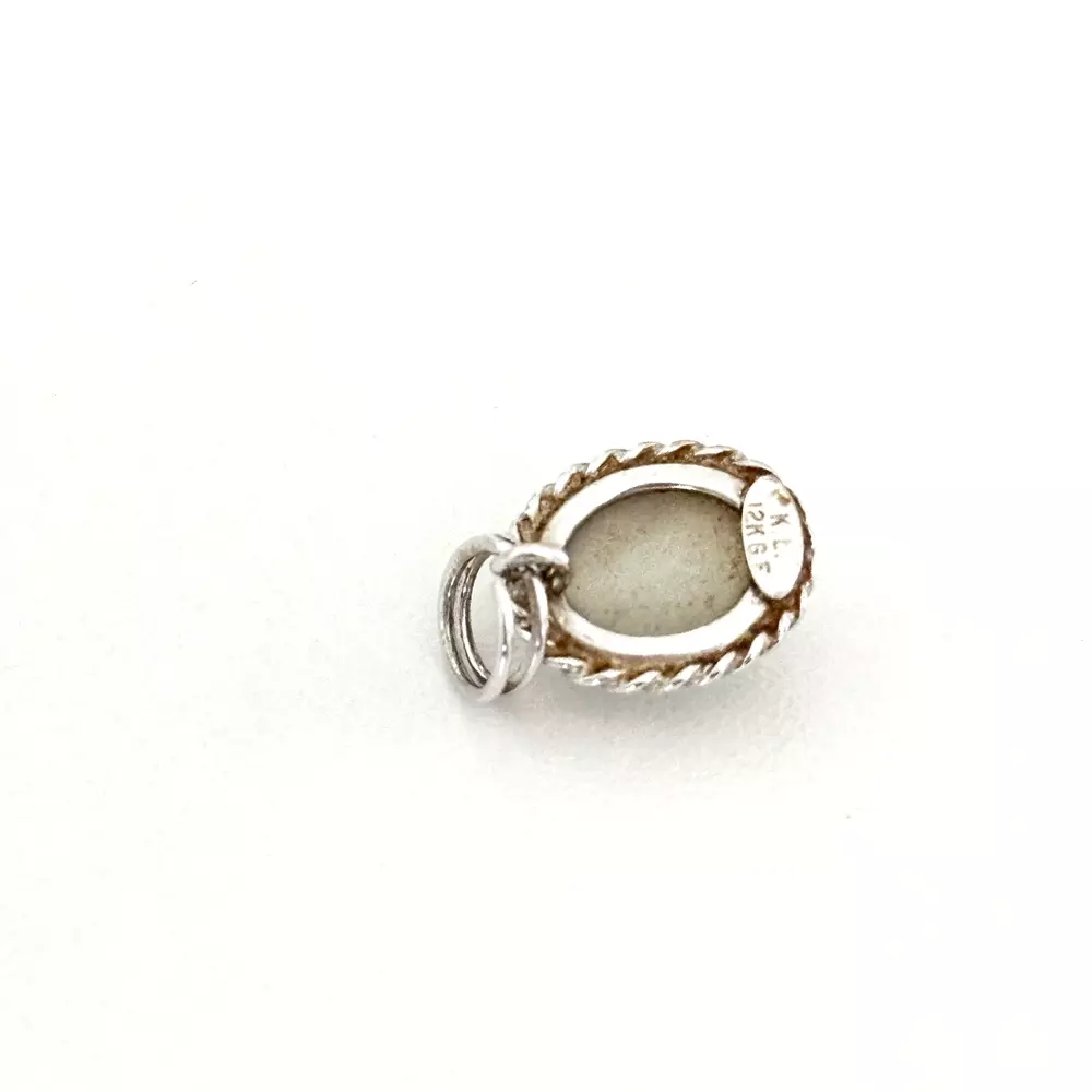 Lovely Vintage 12K White Gold Filled White Light Blue Cat's Eye Oval Charm Pendant Signed: K.L. 12K GF Weight: 1.4 grams Good vintage condition. - Fast shipping, I ship the same or next business day! I also combine shipping. - Thank you so much for shopping with me and please check out my other jewelry listings, I post new pieces daily!
