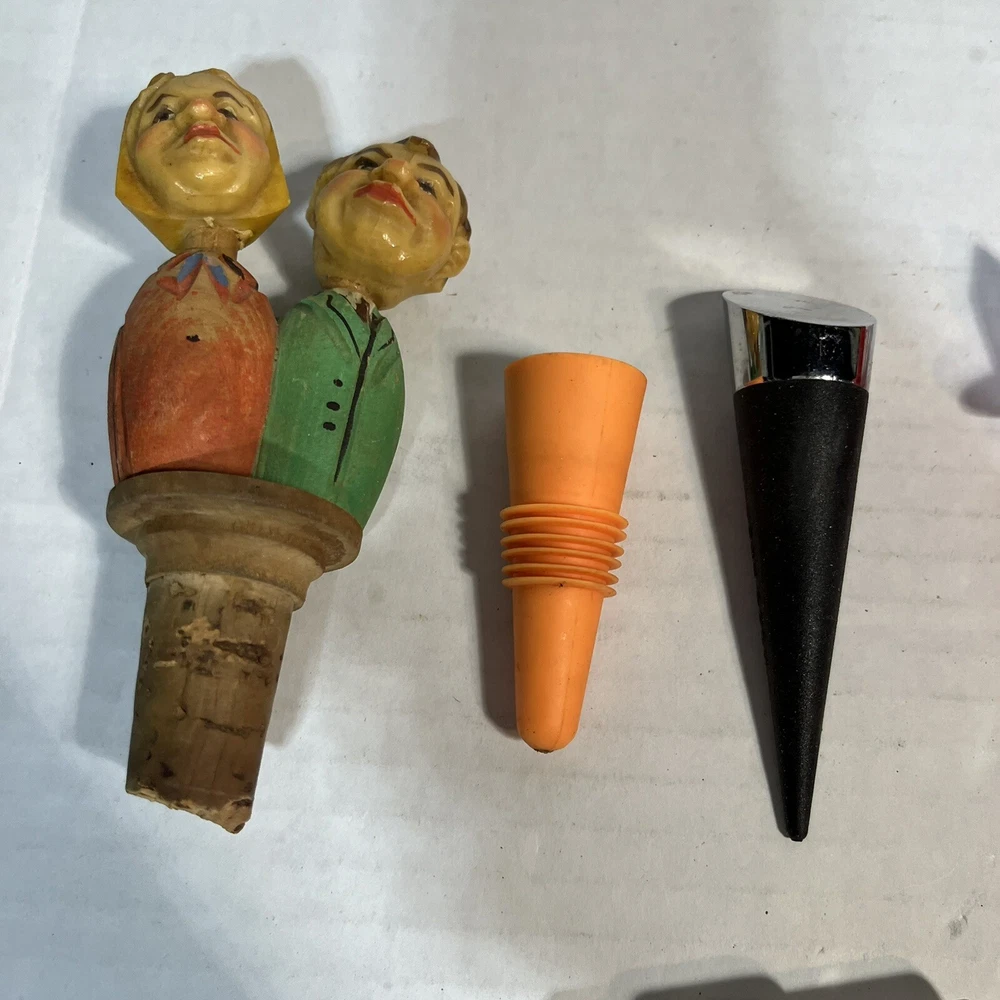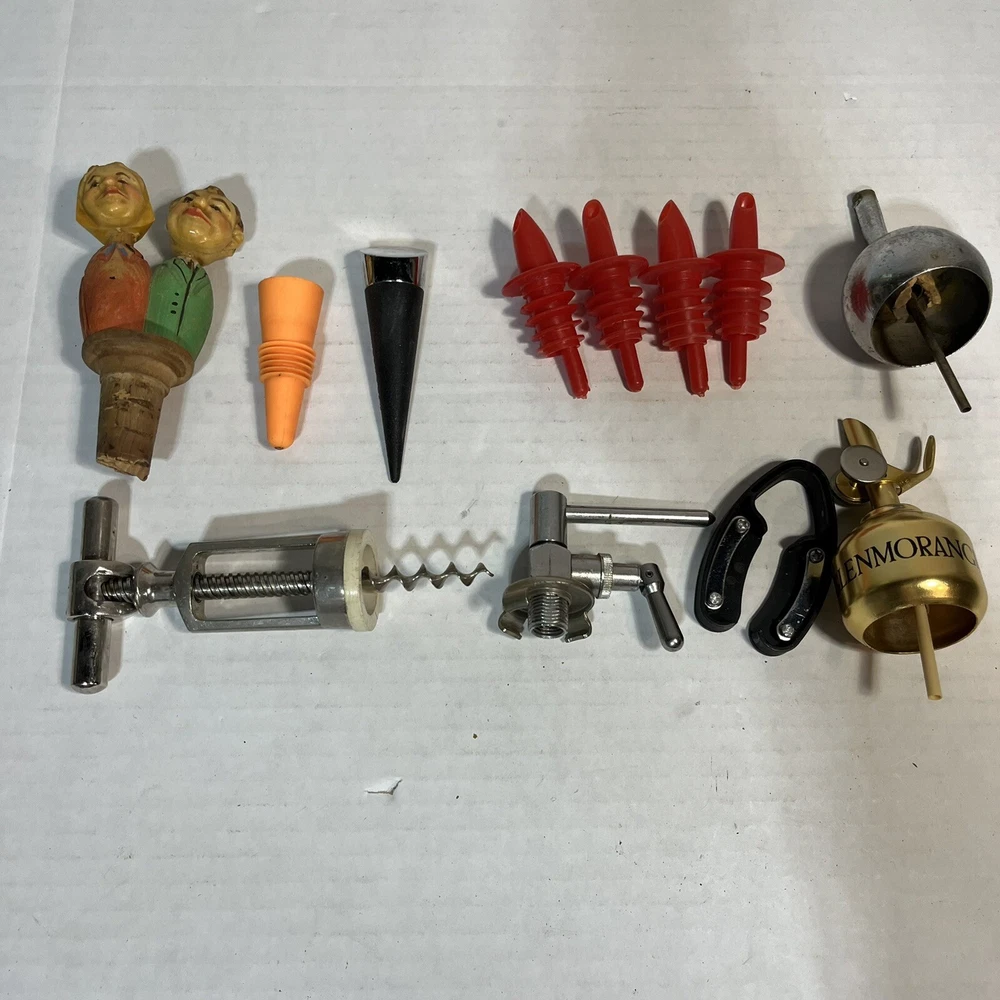 Vintage bar items in great condition some are newer wine stops, pouring tops corkscrew bottle opener excellent set